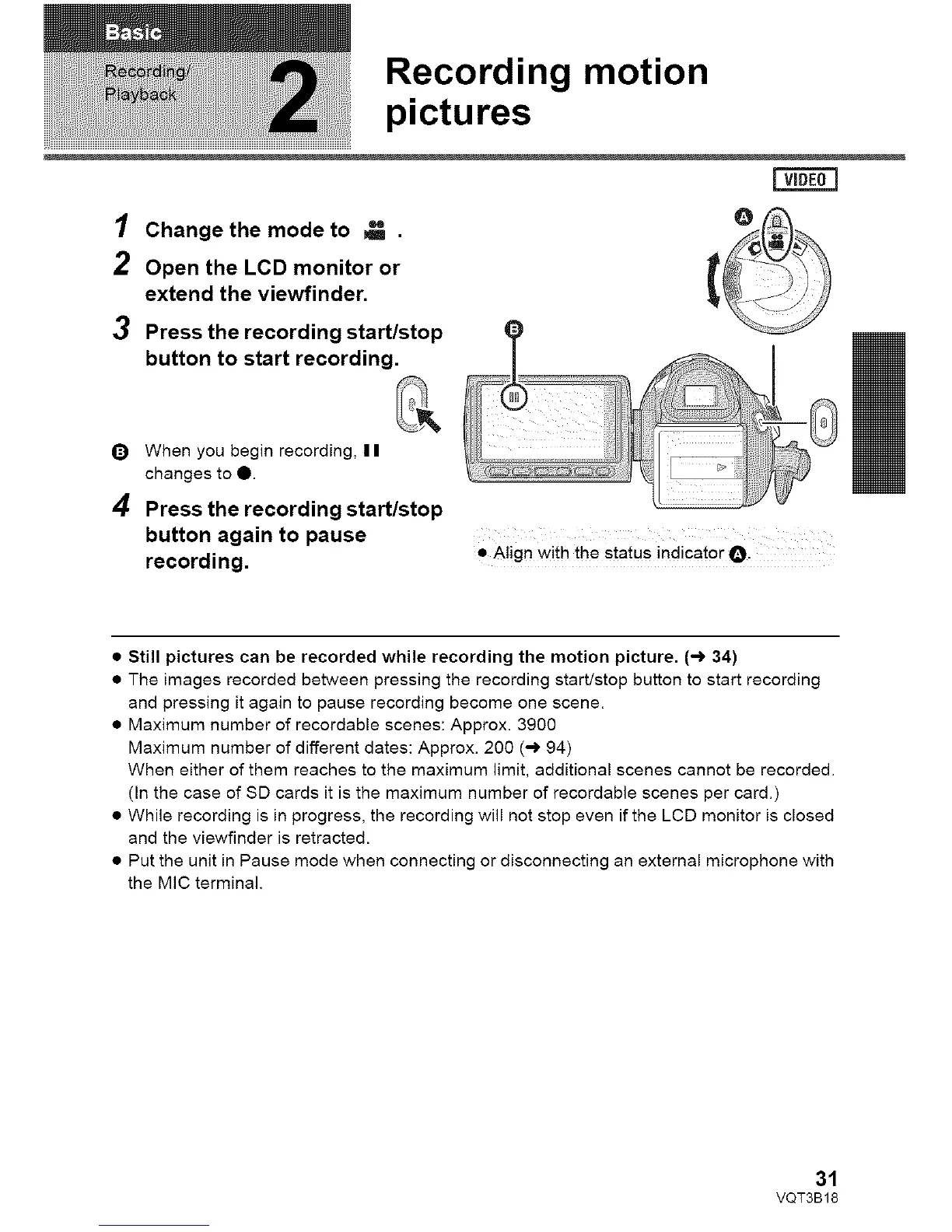 • Still pictures can be recorded while recording the motion picture. (-_ 34)