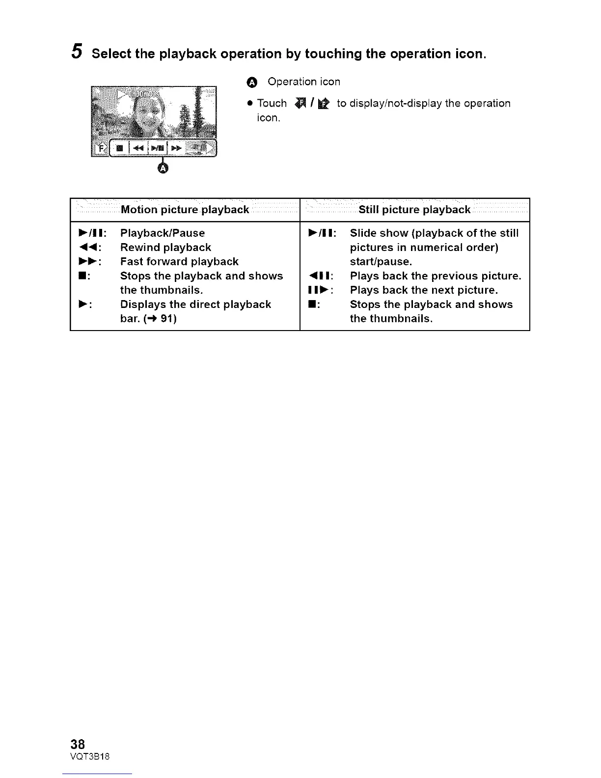 Select the playback operation by touching the operation icon.