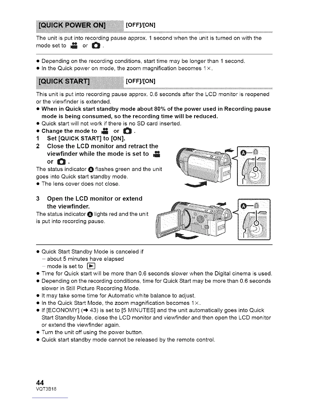 • Depending on the recording conditions, time for Quick Start may be more than 0.6 seconds