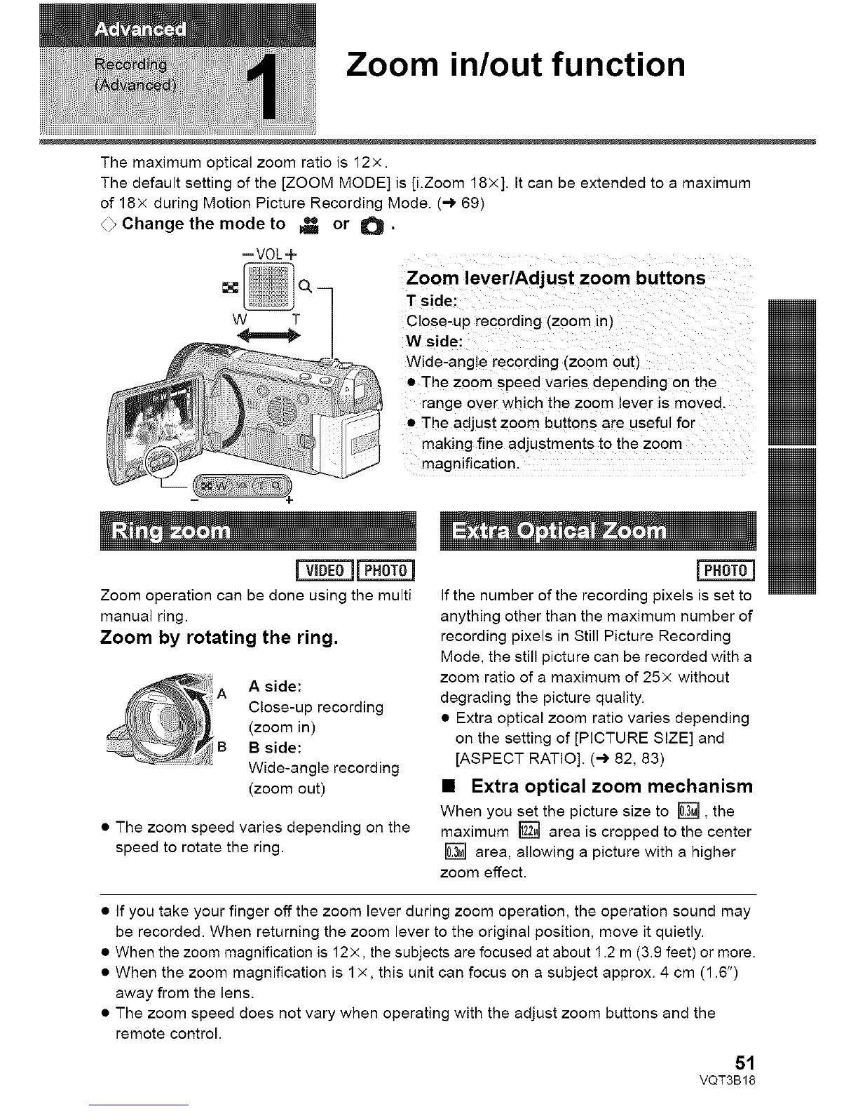 of 18x during Motion Picture Recording Mode. (-) 69)