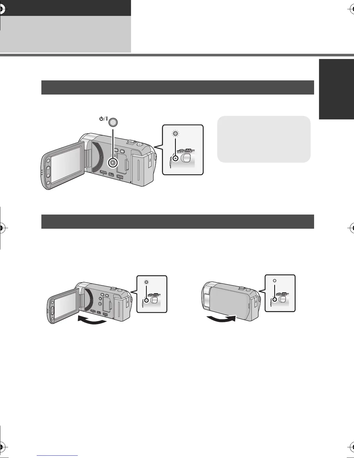 ≥ The unit will not turn off while recording motion pictures even if the LCD monitor is closed.
