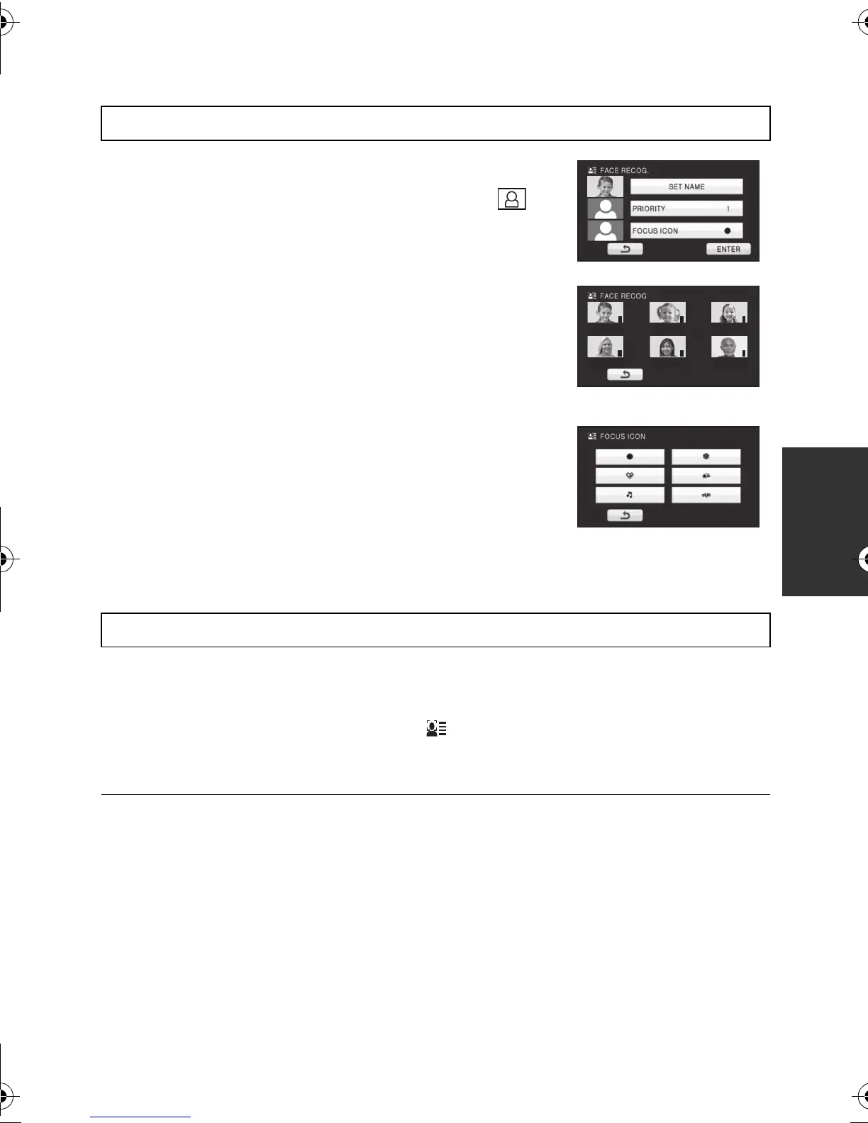 [RECORD SETUP] # [FACE RECOG.] # [SET] # [DELETE] or [DELETE ALL]