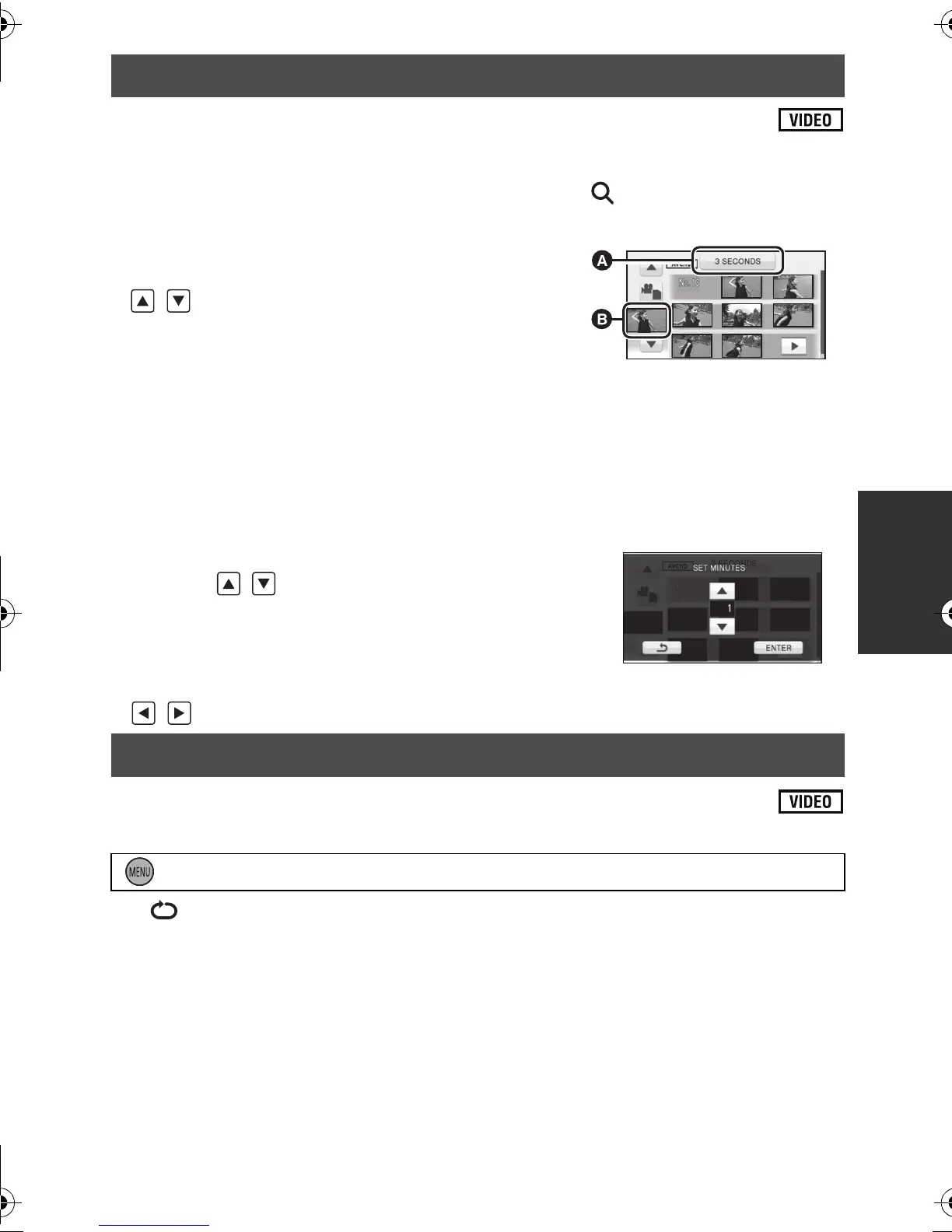 ≥ All the scenes are played back repeatedly. (When playing back motion pictures by date, all