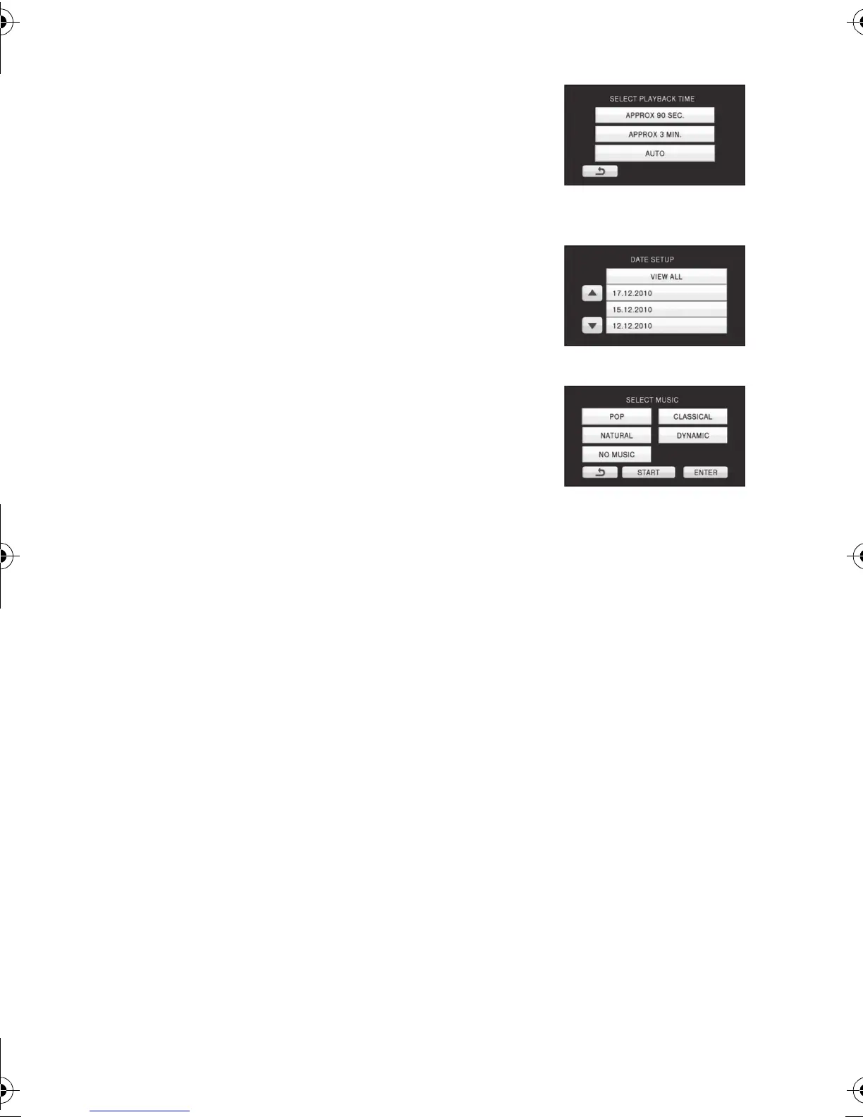 ≥ When [NO MUSIC] is selected, the audio recorded at the