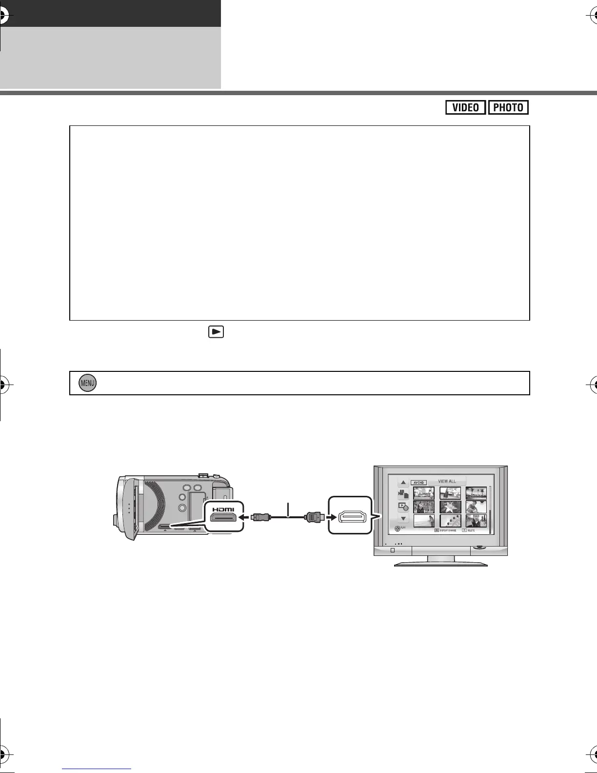 ≥ Always use a genuine Panasonic HDMI mini cable (RP-CDHM15, RP-CDHM30; optional).