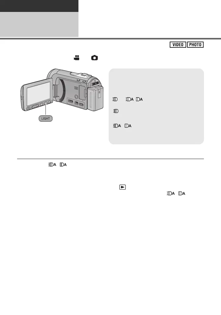 ≥ If you turn off the power or change the mode to , the video light is turned off.