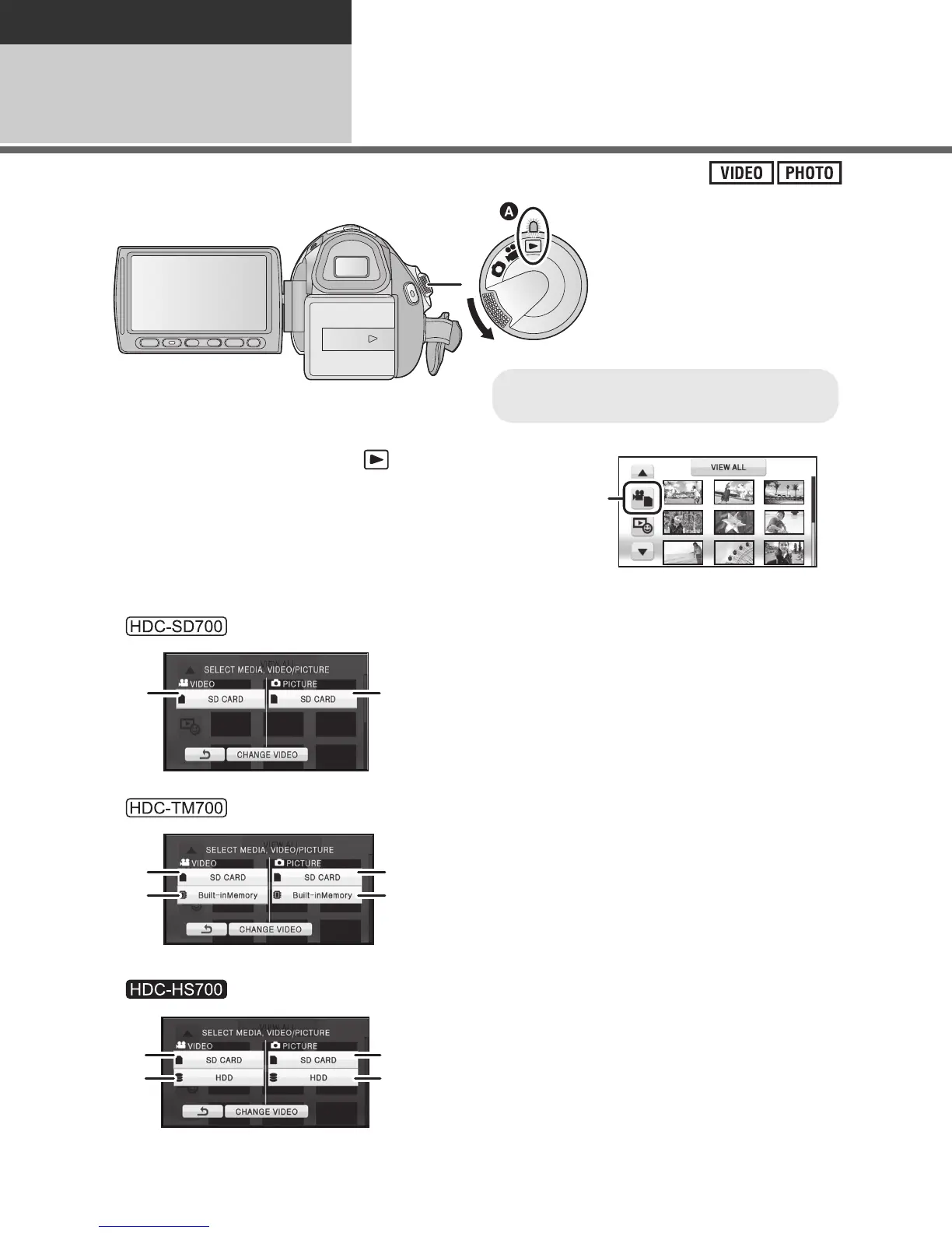 Panasonic HDC-TM700 - Playback: Motion and Still Pictures; Media Selection for Playback