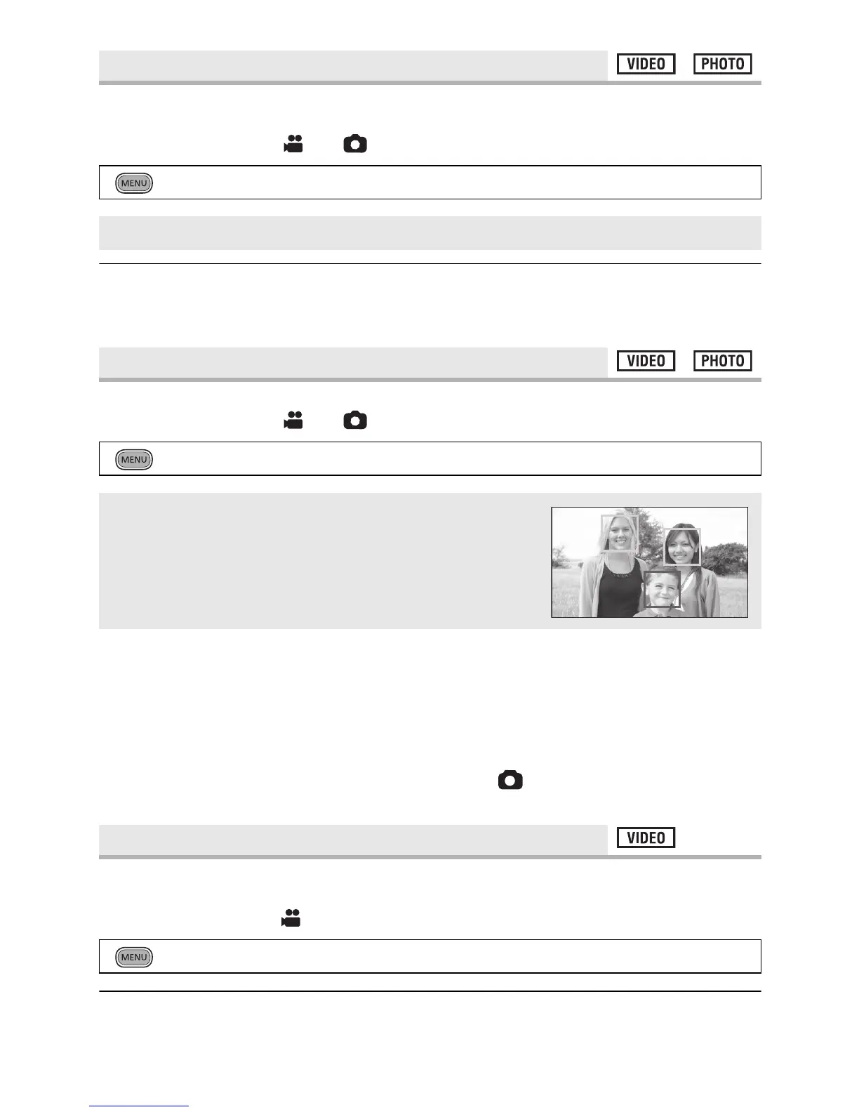 recording still pictures. Prioritised face framing will turn to green when the focus is set.