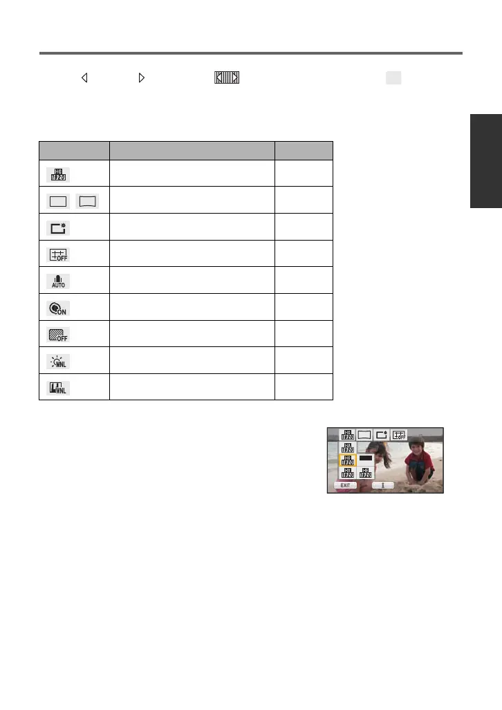 ≥ The items displayed differ depending on the position of the mode switch or settings.