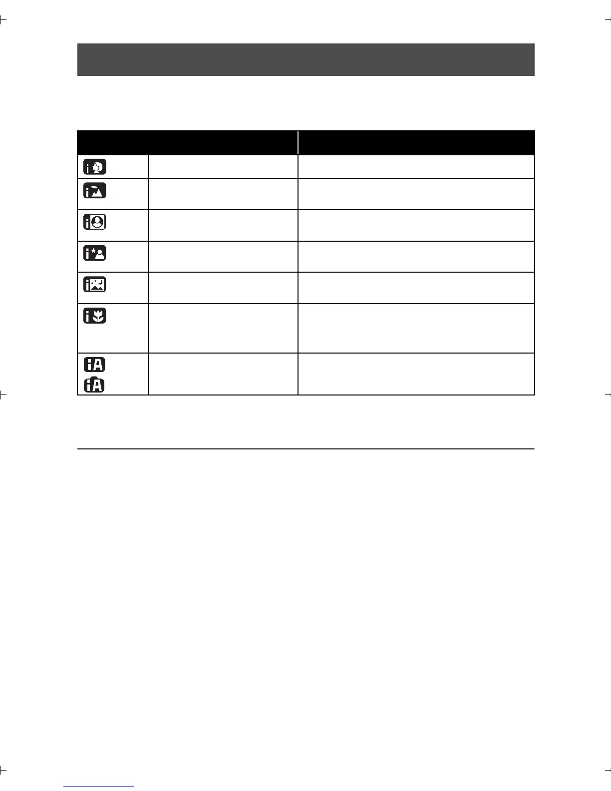 ≥ Using a tripod is recommended in Night Portrait and Night Scenery