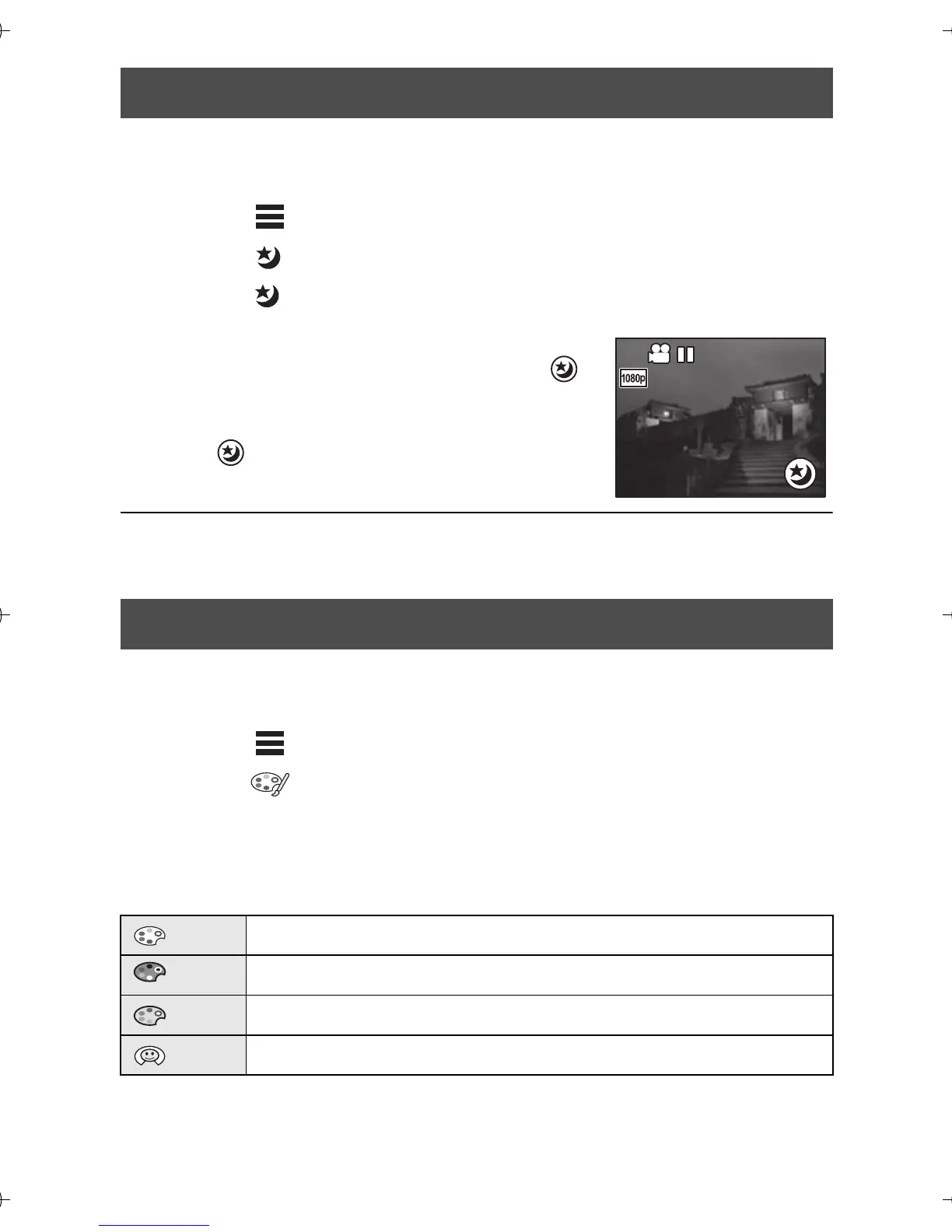 ≥ You cannot turn the Night View mode on/off while recording.