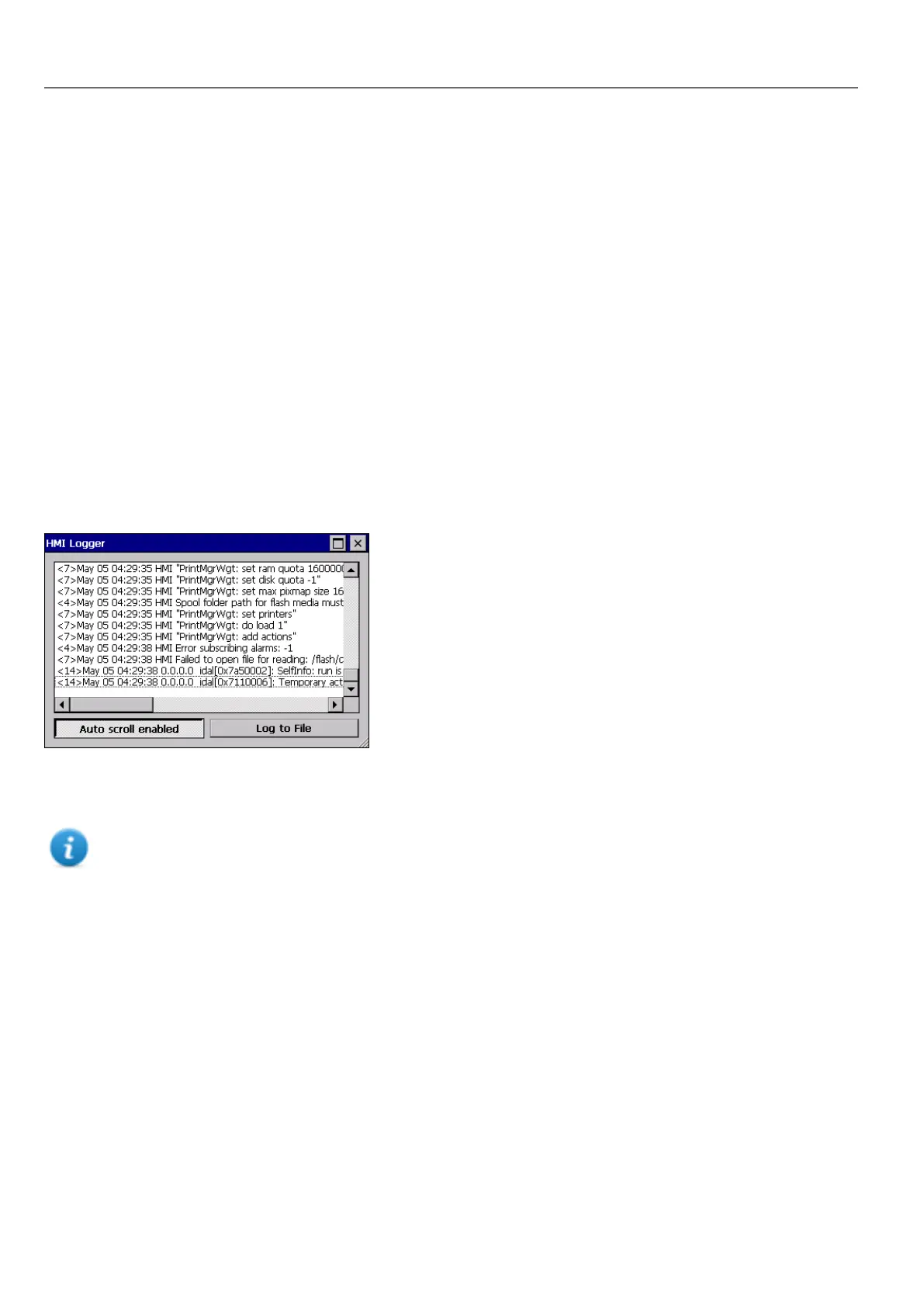 Click Log to file to save data: a logger.txt file is saved to the ...\var\log folder.