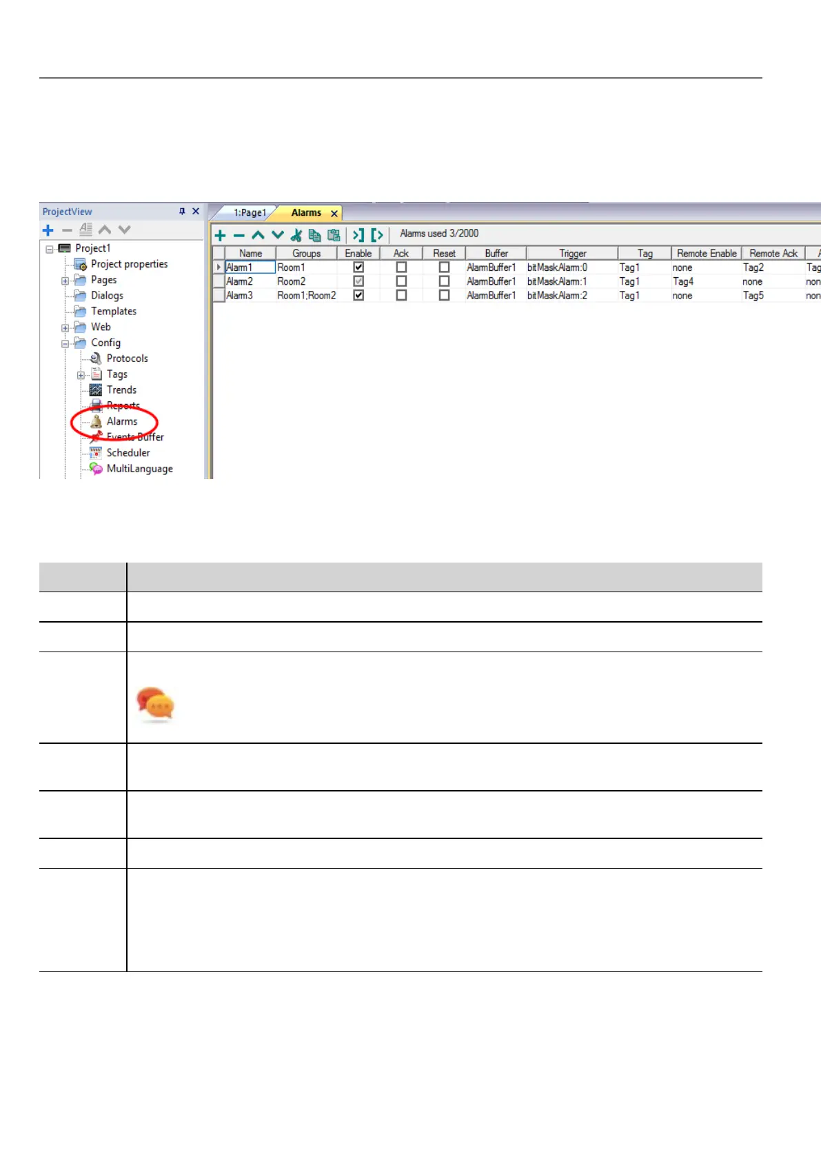 Alarms Editor
