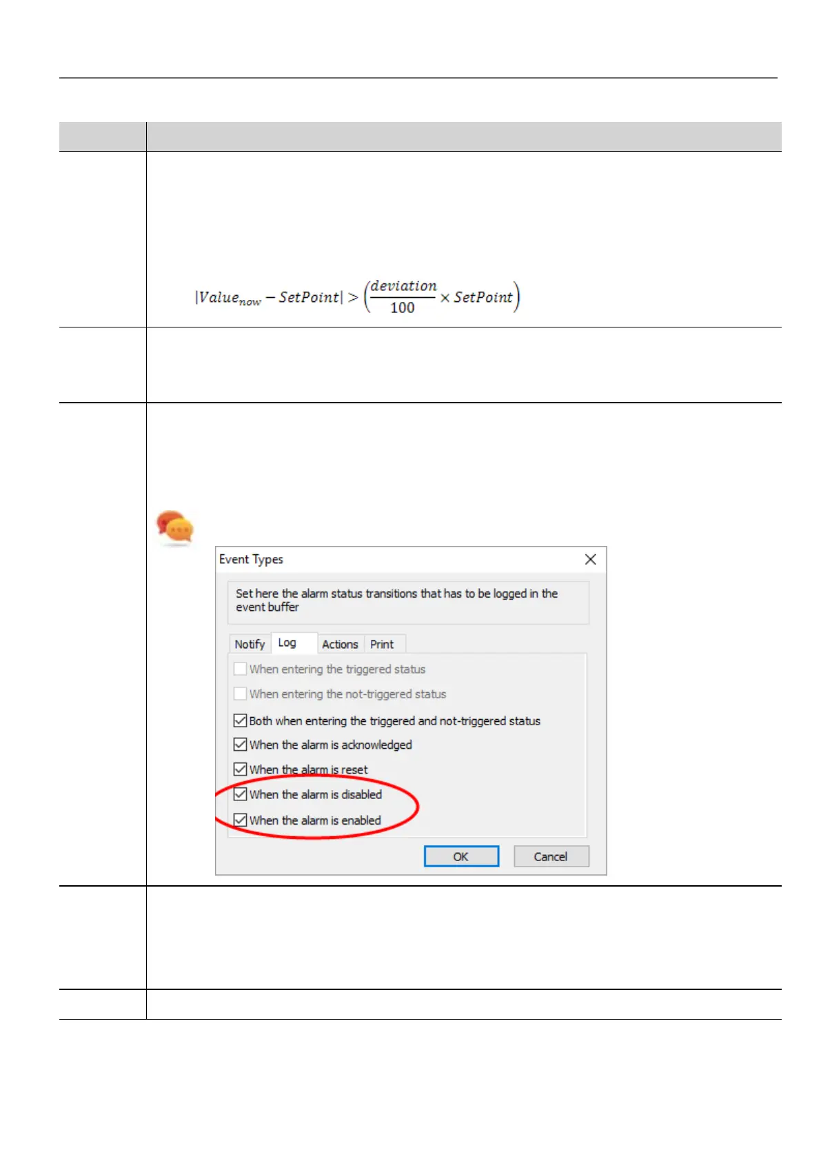l deviationAlarm: alarm triggered if the percentage of deviation of the tag value from the set point