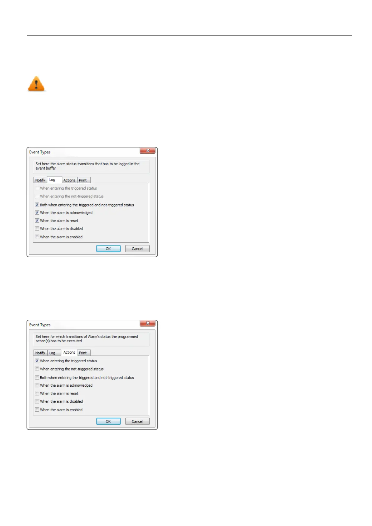 By default, actions are executed only when the alarm is triggered; other alarm states can also be set to execute actions.