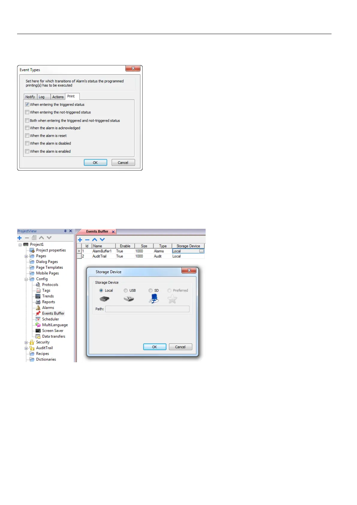 Path: ProjectView> Config > Events Buffer> Storage Device tab