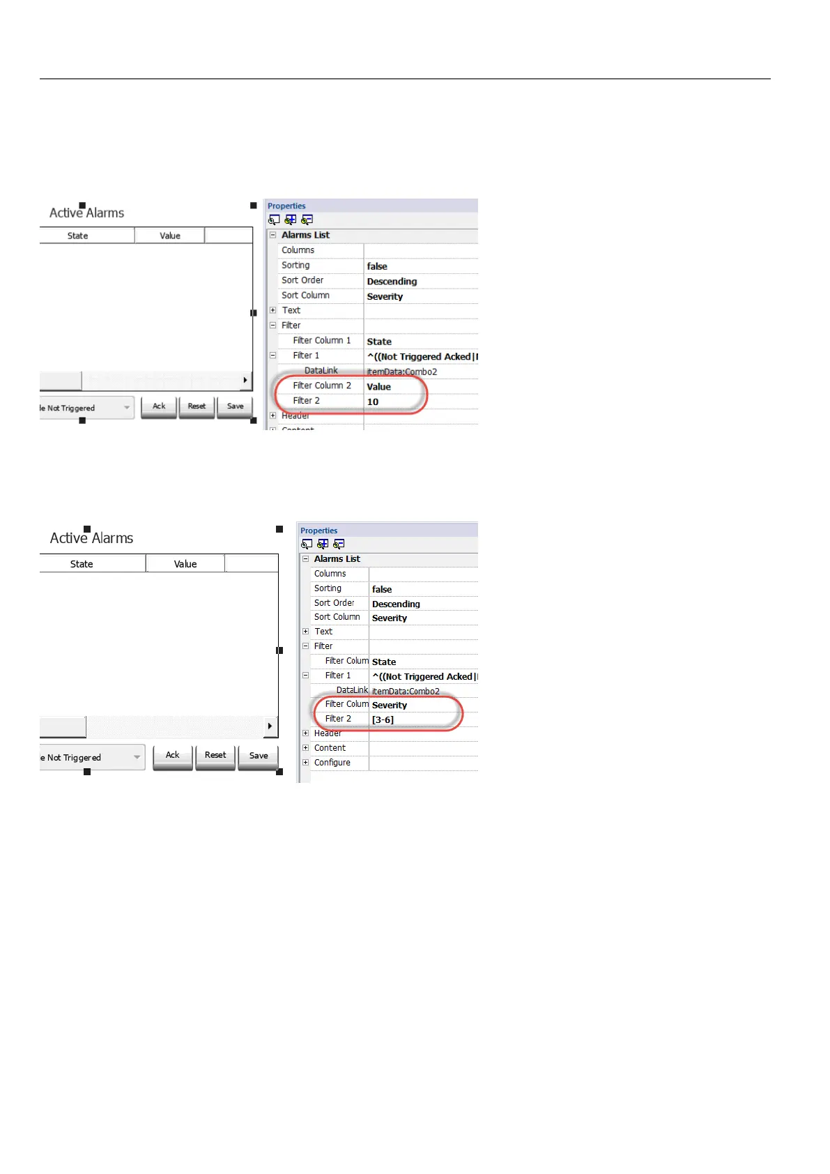 You want to show all alarms matching a Severity value from 3 to 6 (Normal to Critical). Then properties settings: Filter