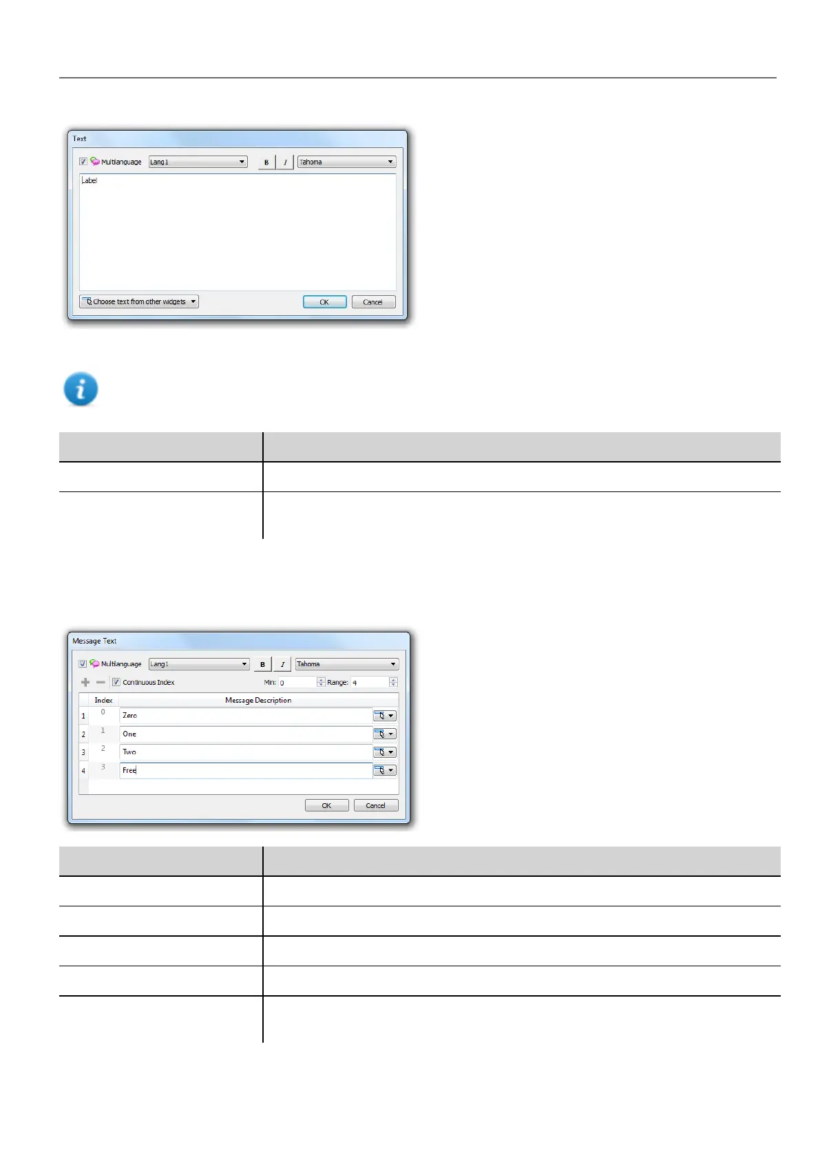 Double-click on a message widget in a page to open the Message Text dialog.
