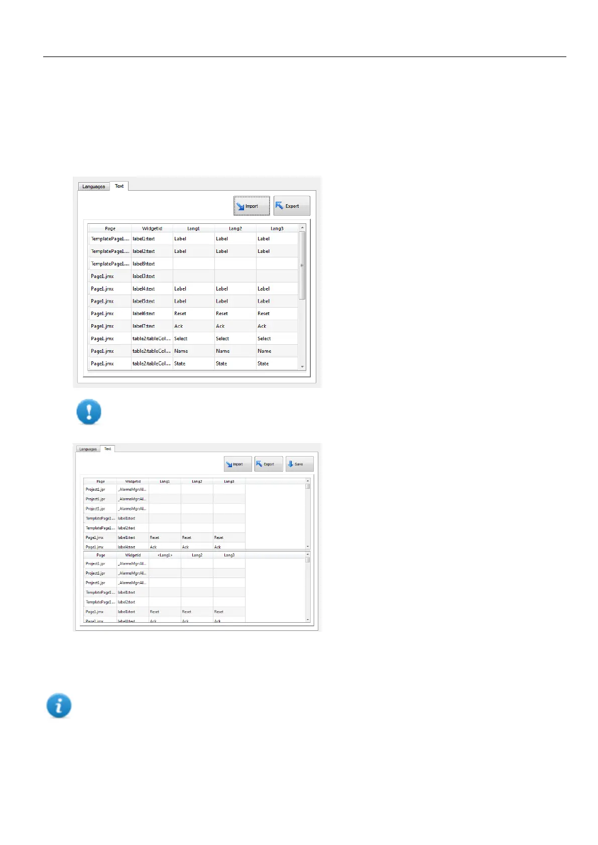 1. In the Text tab, click Export: all multi-language strings are exported to a .csv file.