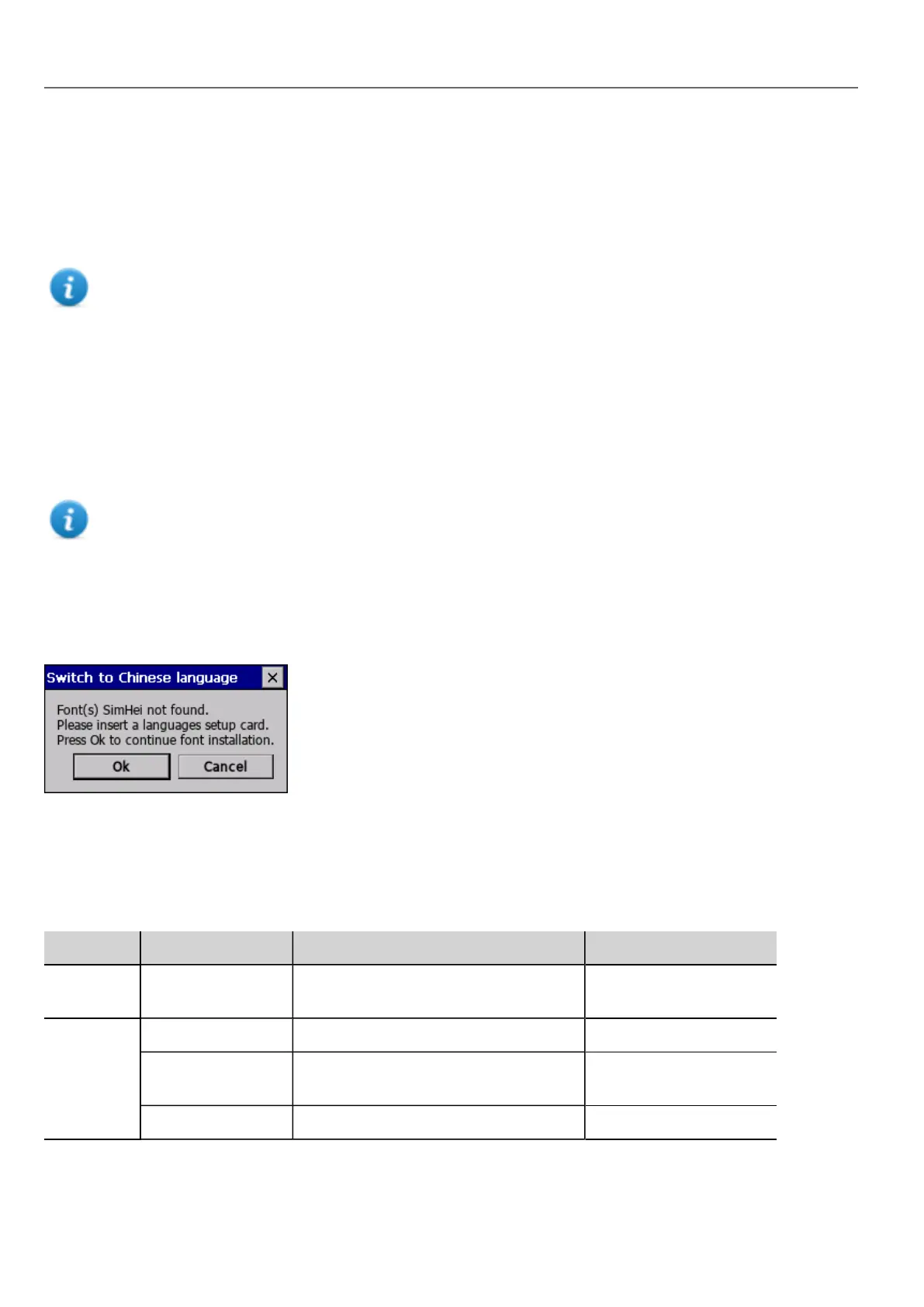 When you change language, if the required fonts are not available in the device memory, a pop-up message prompts you to