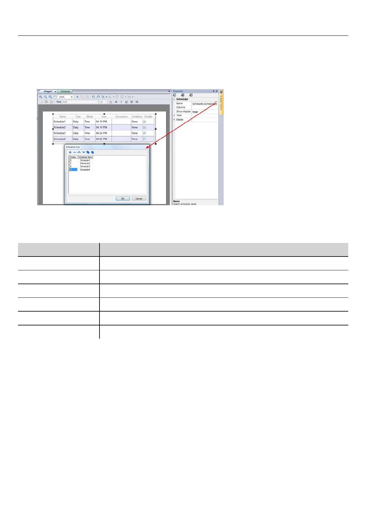 2. In the Properties pane, click + for the Name parameter: the Schedule List dialog is displayed.