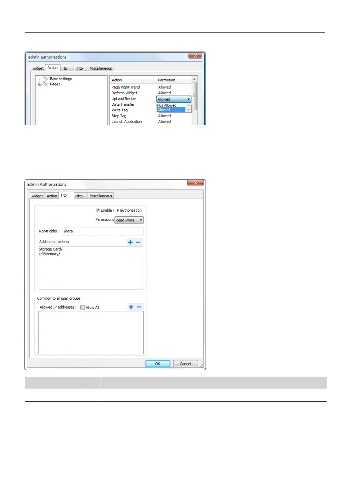 In the Ftp tab you can set specific authorizations for the FTP server.
