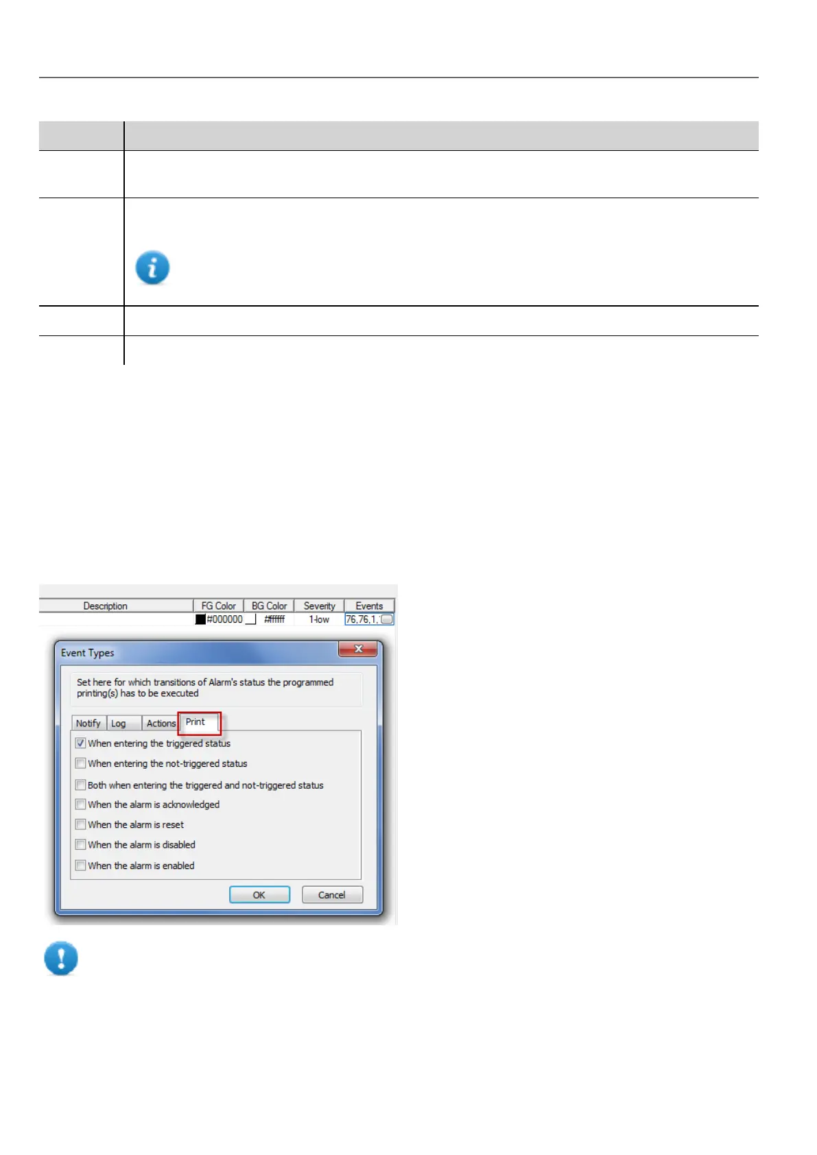 Configuring alarm printing
