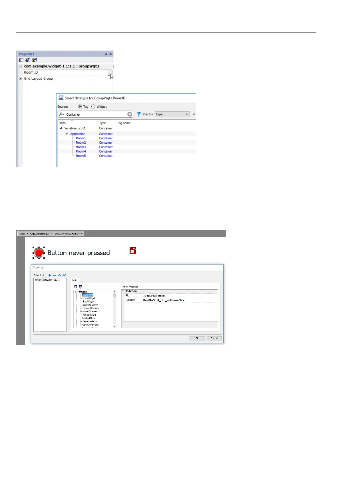 JavaScript functions can be embedded in custom widgets.
