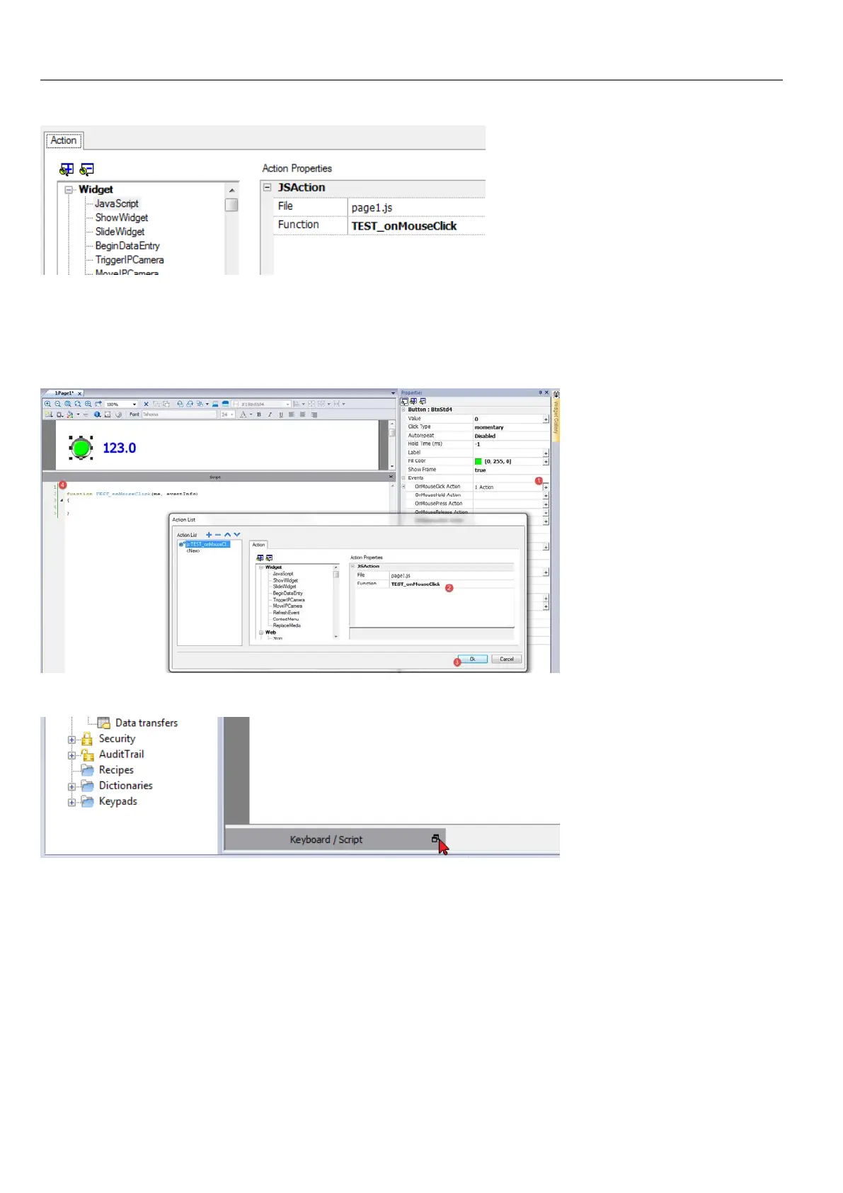2. Add a JavaScript action from the Widget category.