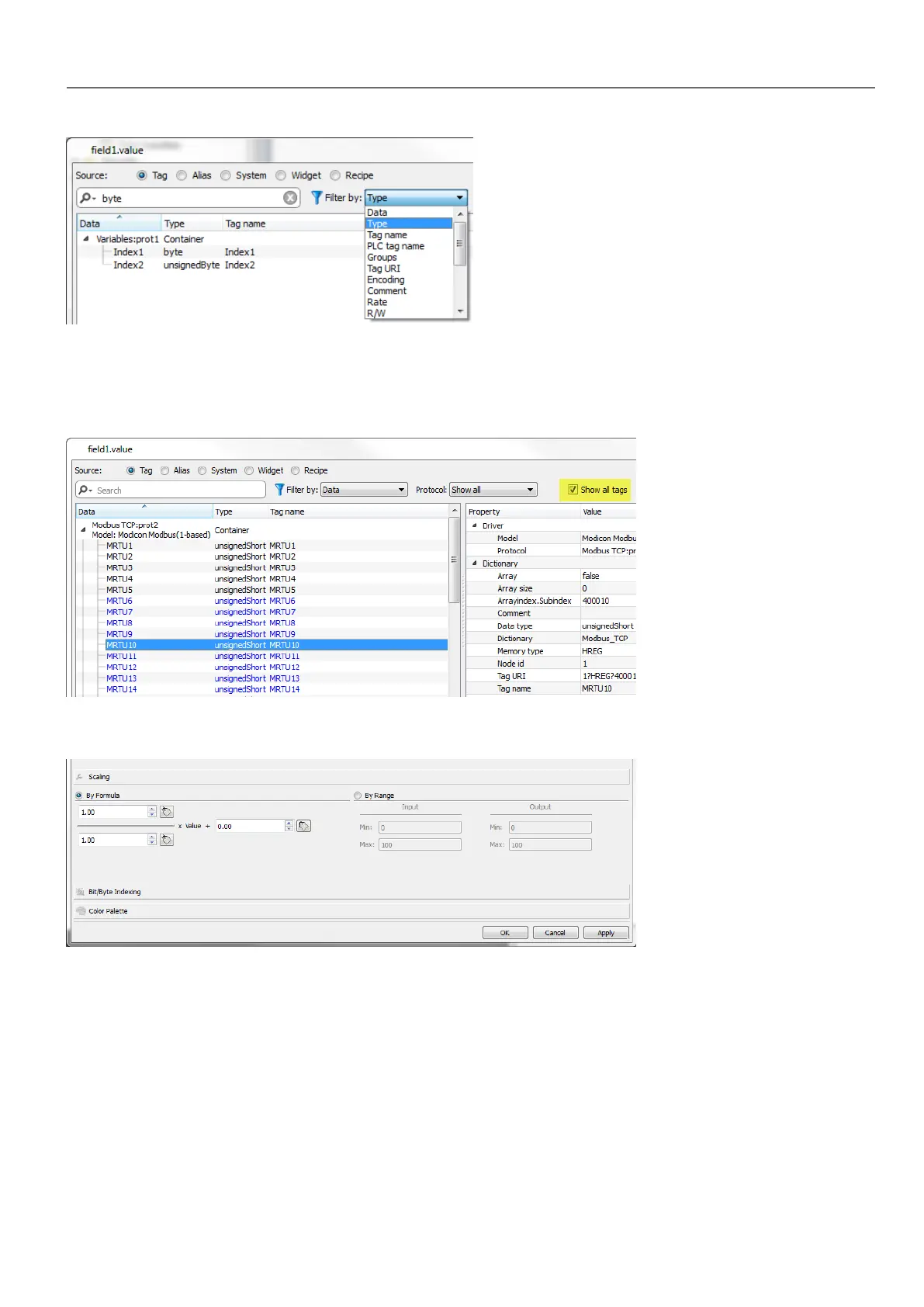 Scaling tab converts the tag value. In By Range section set the input and output range: the system will automatically