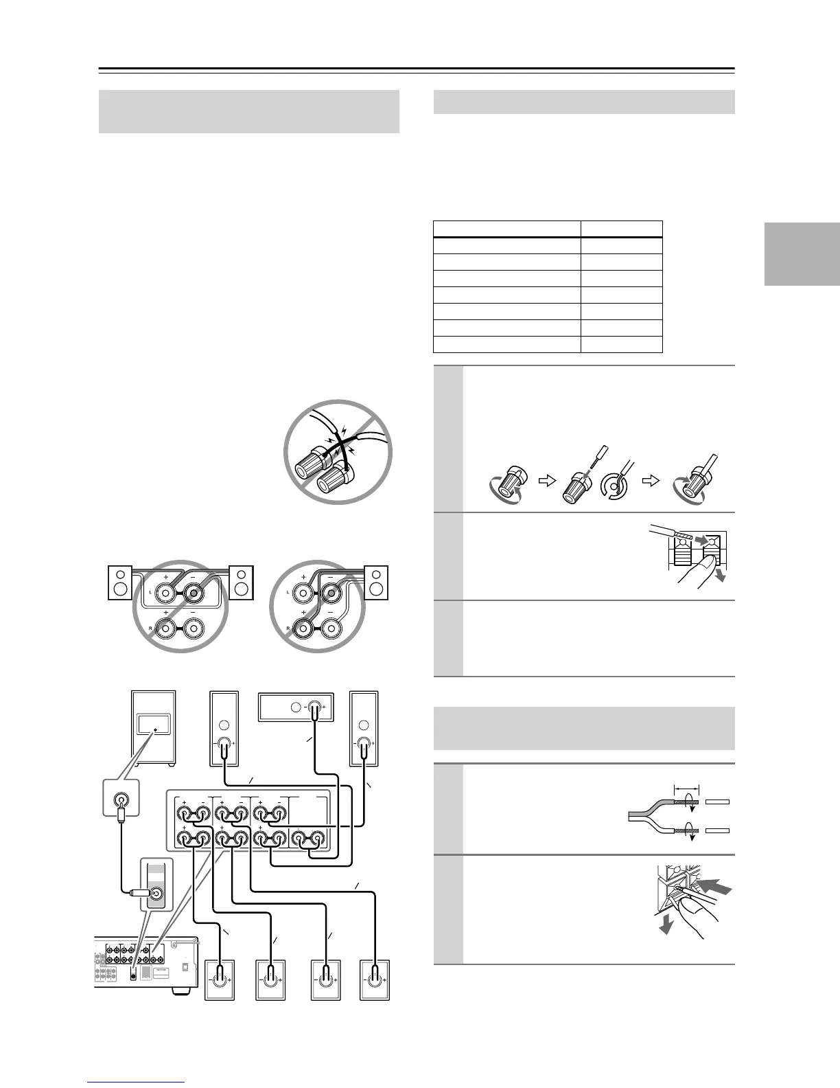 •Soyez attentif à la polarité des câbles de haut-parleur.