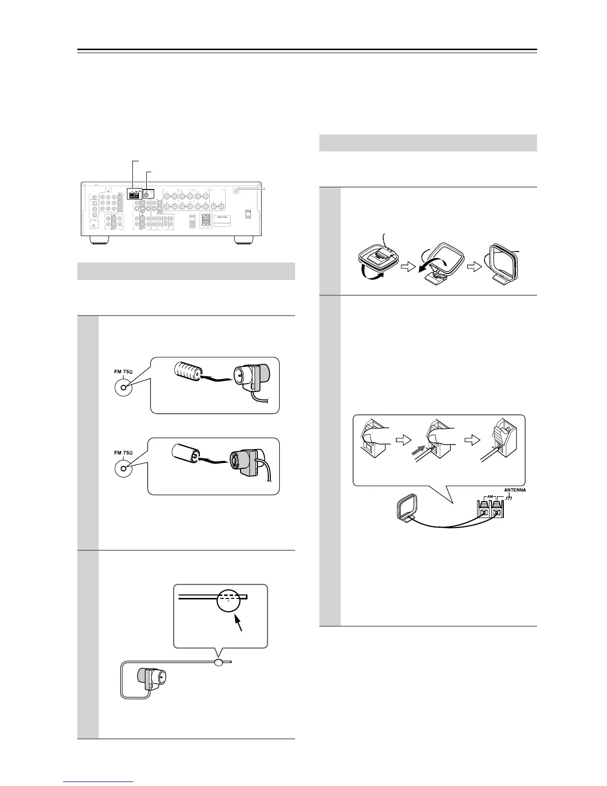 Instale la antena FM, como se muestra.