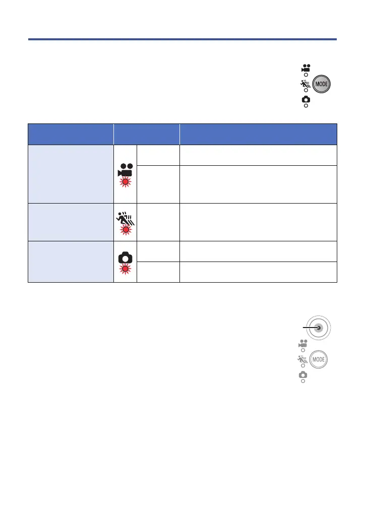 ≥ The recording mode changes each time you press the button. The recording