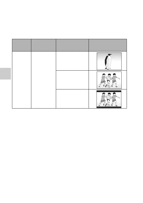 The tables below show the video signal that is output when the [TV ASPECT]