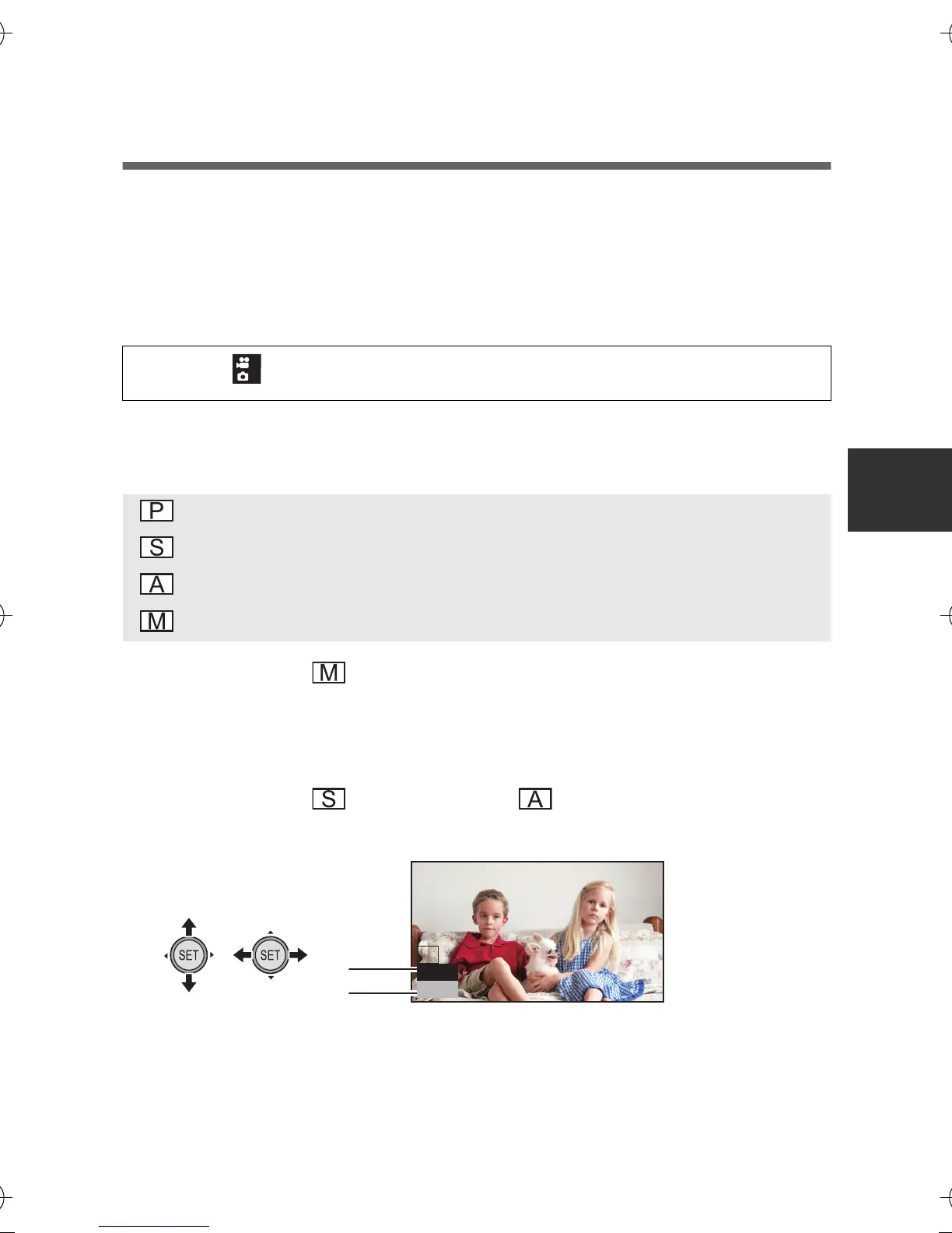 2 Select an exposure mode using the SET button and