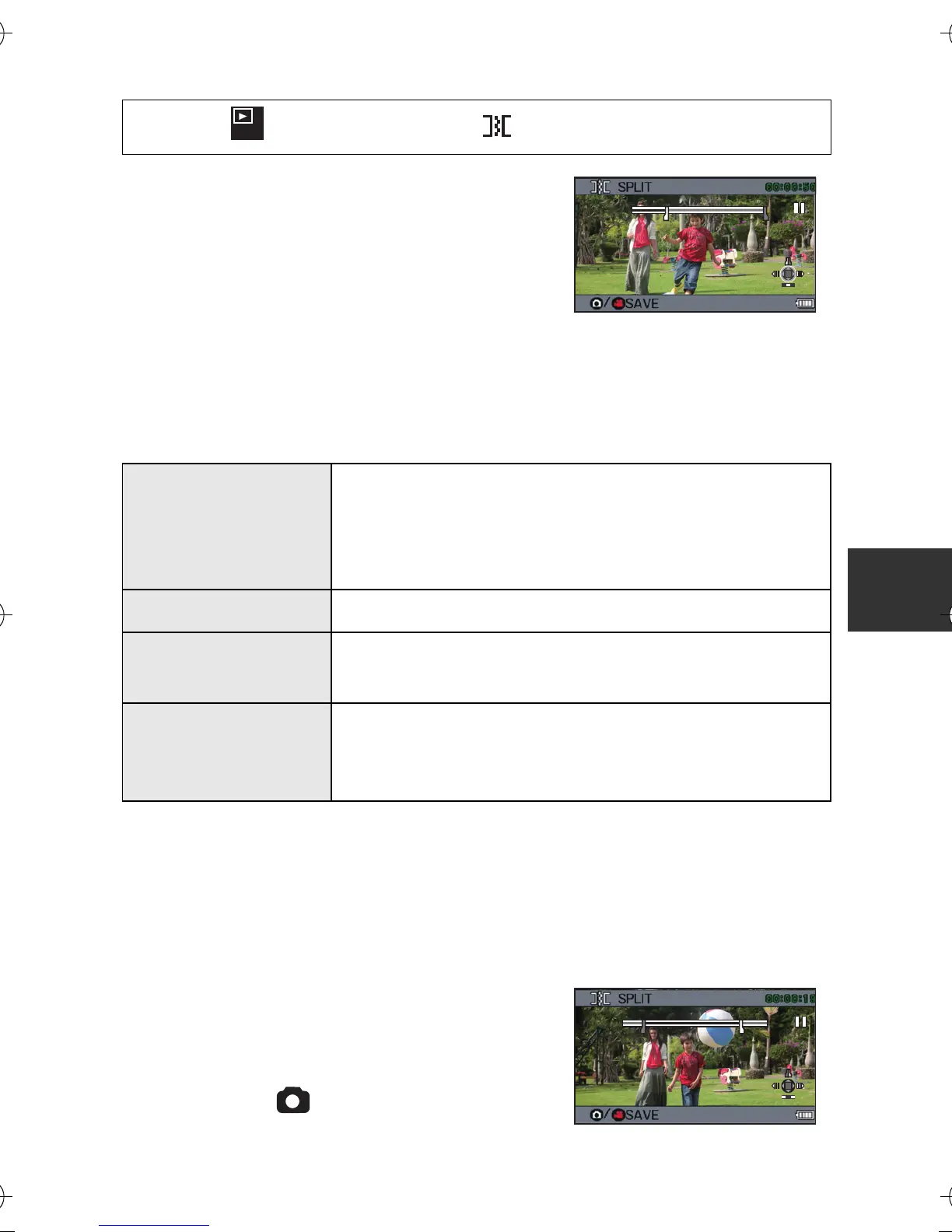 [MENU]: # [EDIT VIDEO] # [ (SPLIT)]