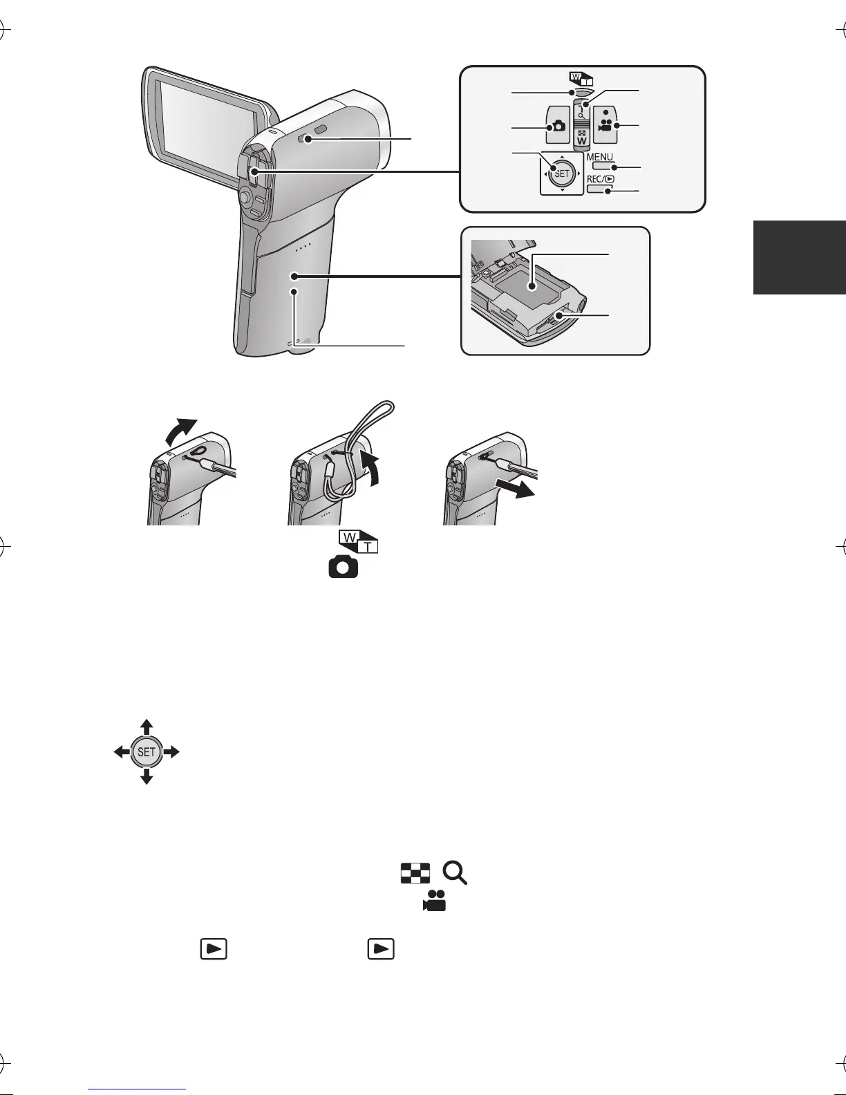 9 In Recording Mode: Zoom lever [W/T] (l 76)