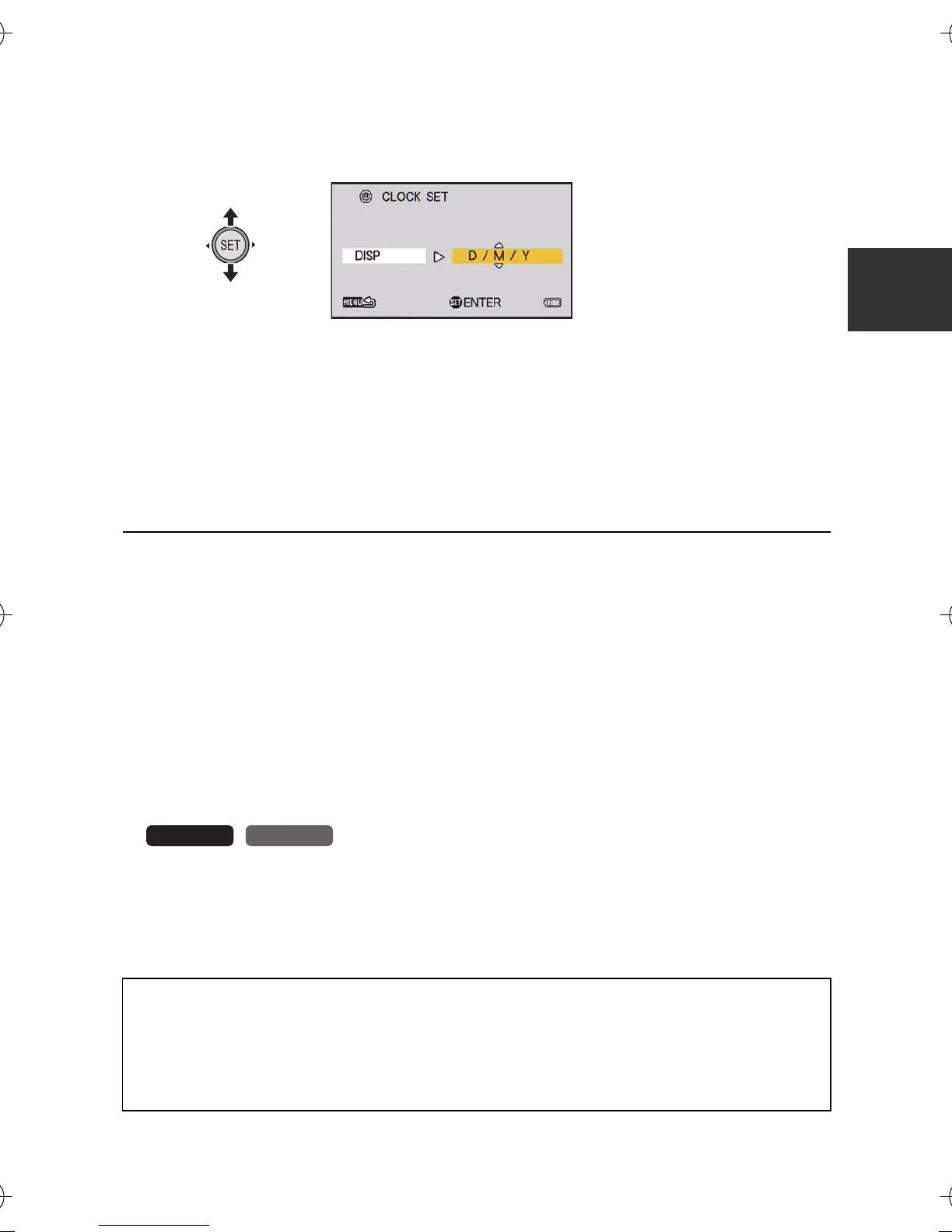 ≥ At the time of purchase, the [CLOCK SET] is not set.