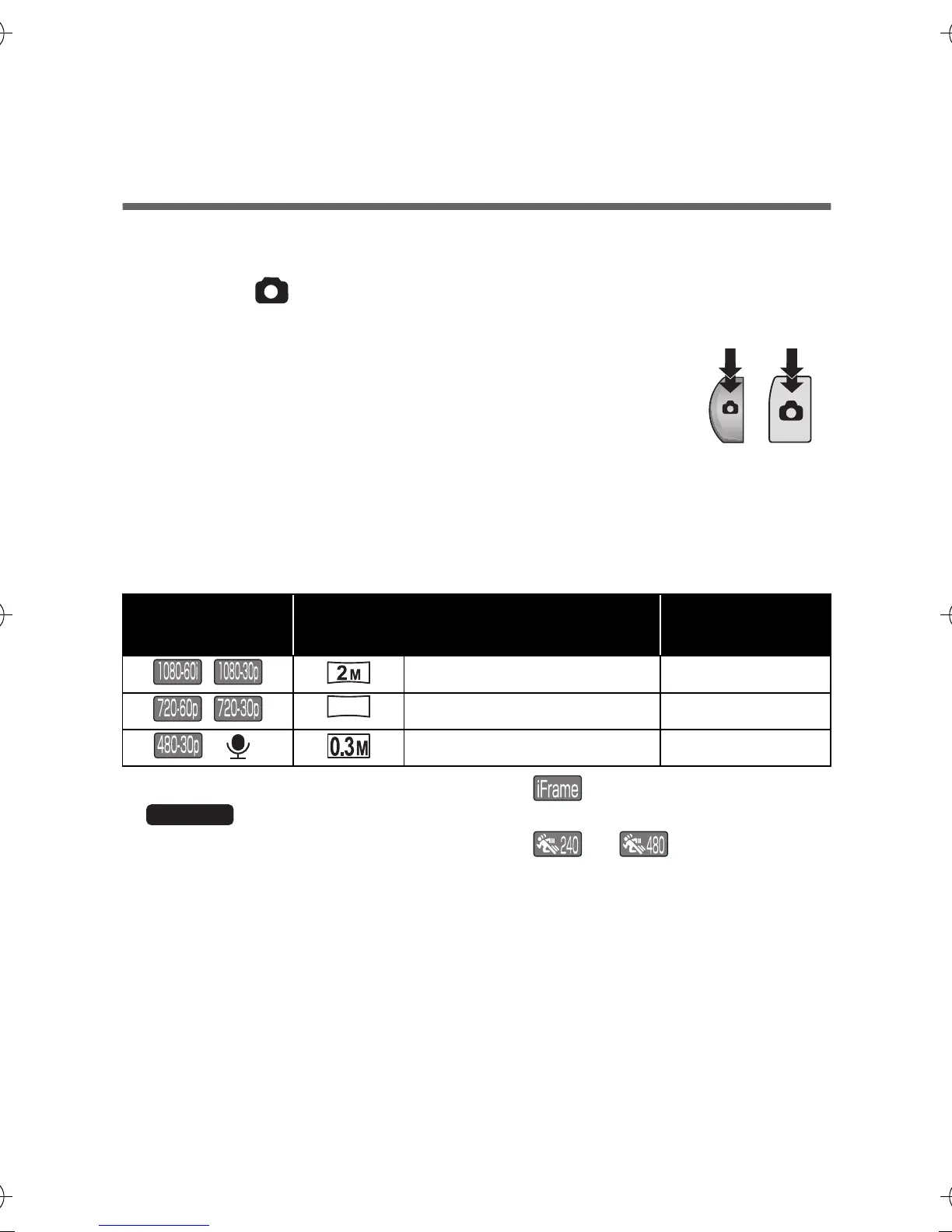 ≥ Still pictures cannot be recorded during recording.