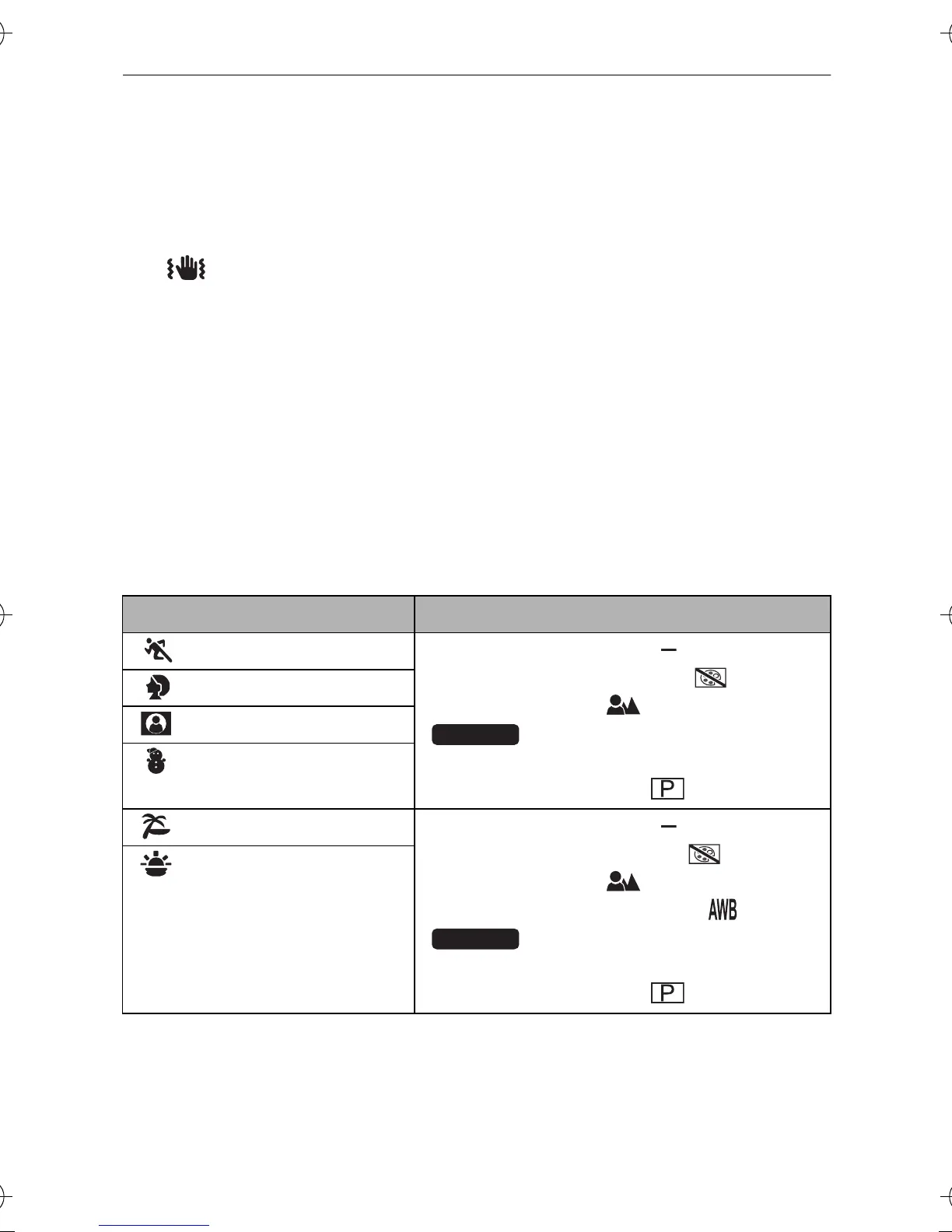 j (the camera shake icon) is displayed constantly when recording