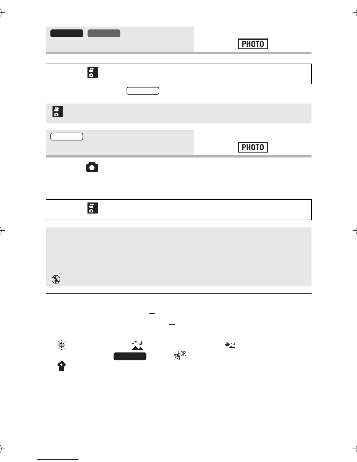 NIGHT SHOT) ( only), (HDR (Backlight Comp.)), or