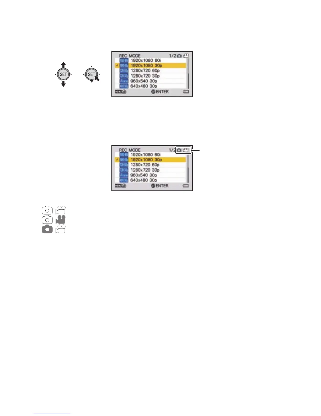 5 Select the setting content using the SET button and