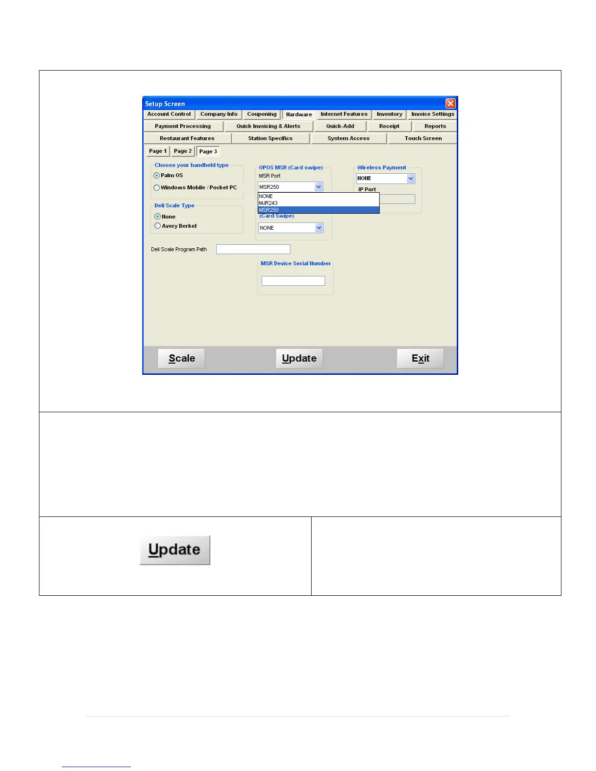 Panasonic JS-925WS - Configure MSR (Card Swipe); Update Settings