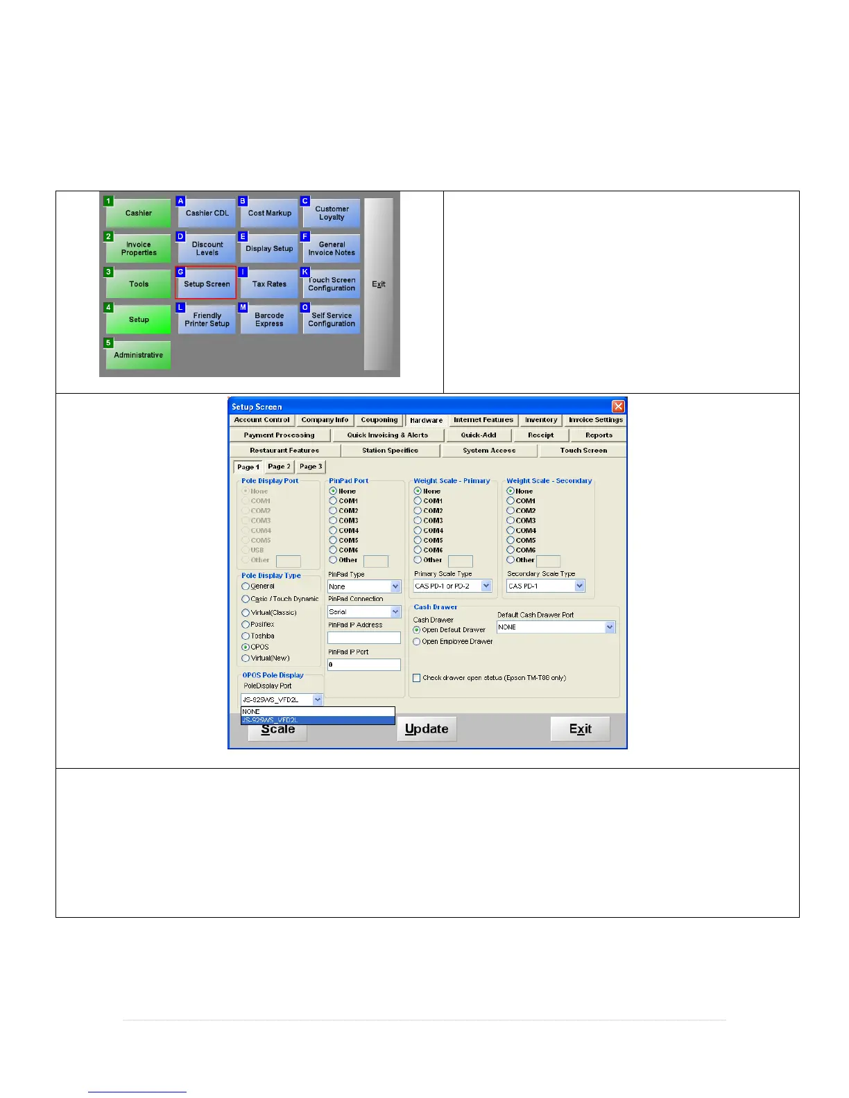 3. Under Pole Display Type select OPOS.