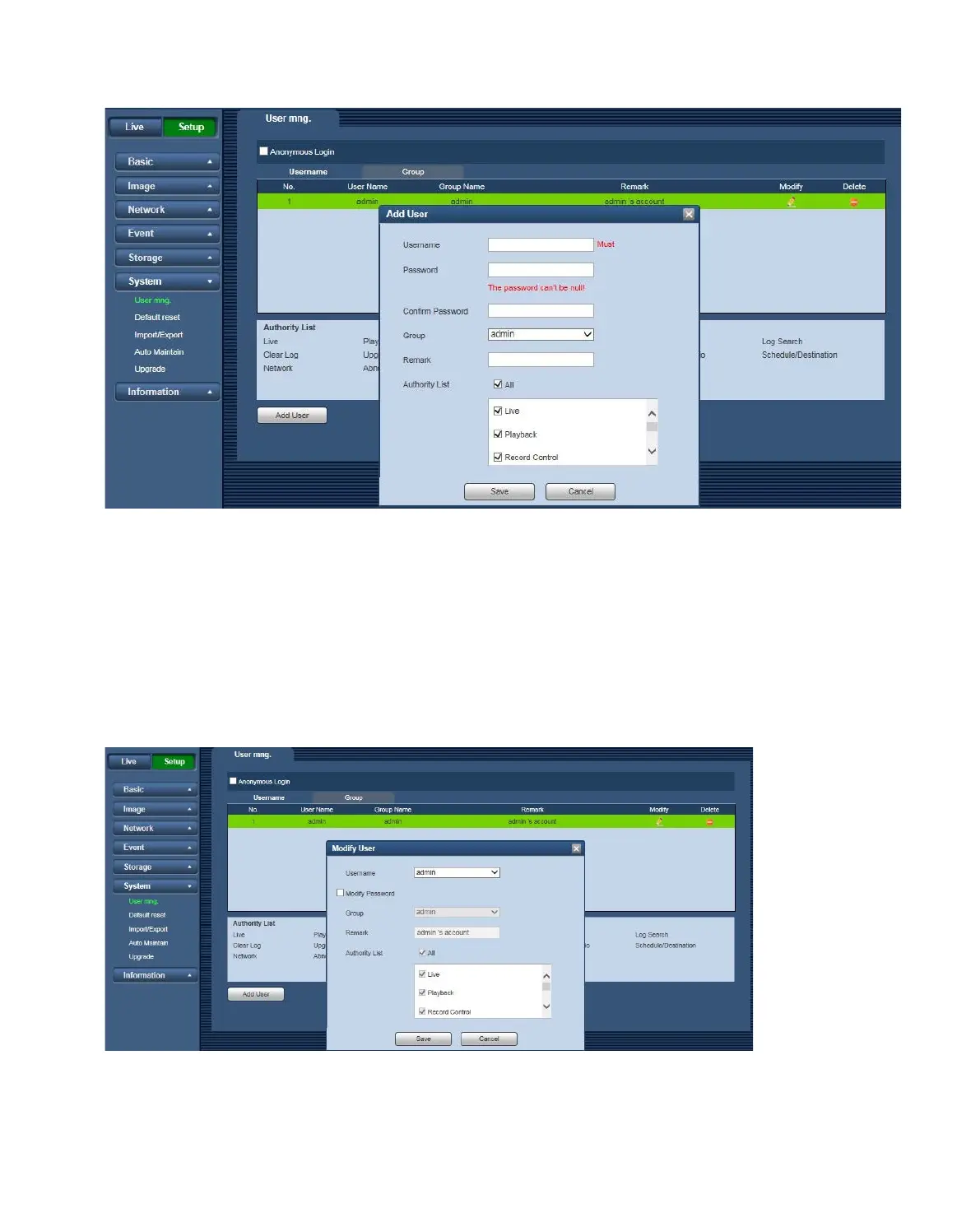 It is to modify the user property, belonging group, password and rights. See Figure 4-50.