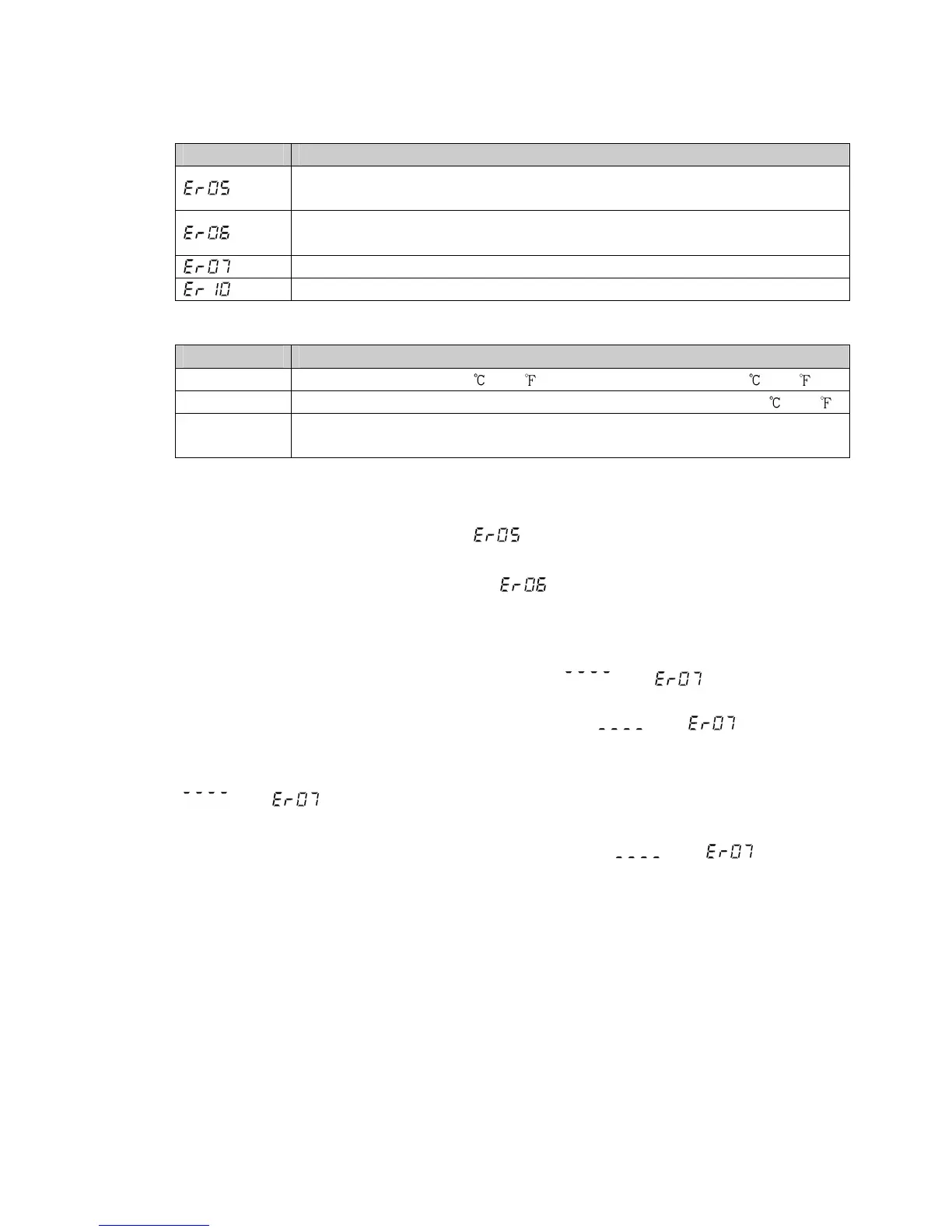 If errors occur during operation, error codes below are indicated in the PV Display.