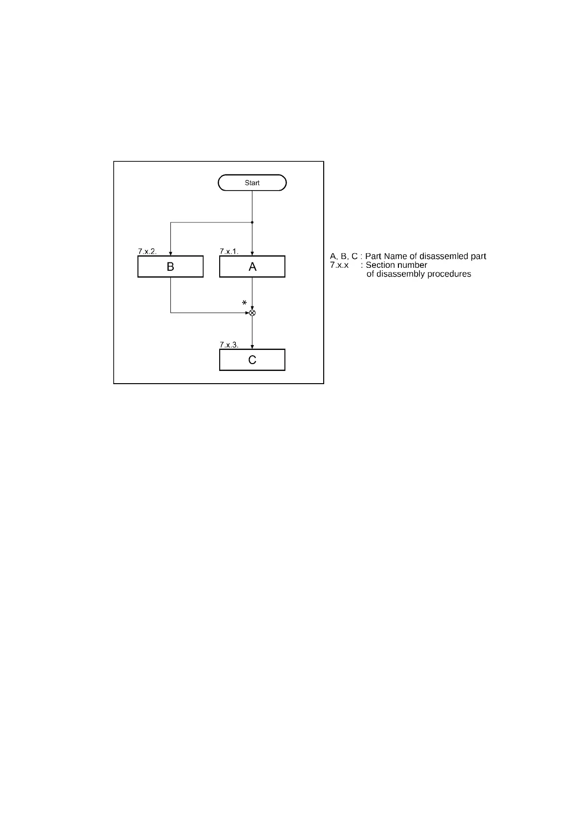 * This sample flowchart shows that, to disassemble C, the procedures 7.x.1. and 7.x.2. must be performed first before