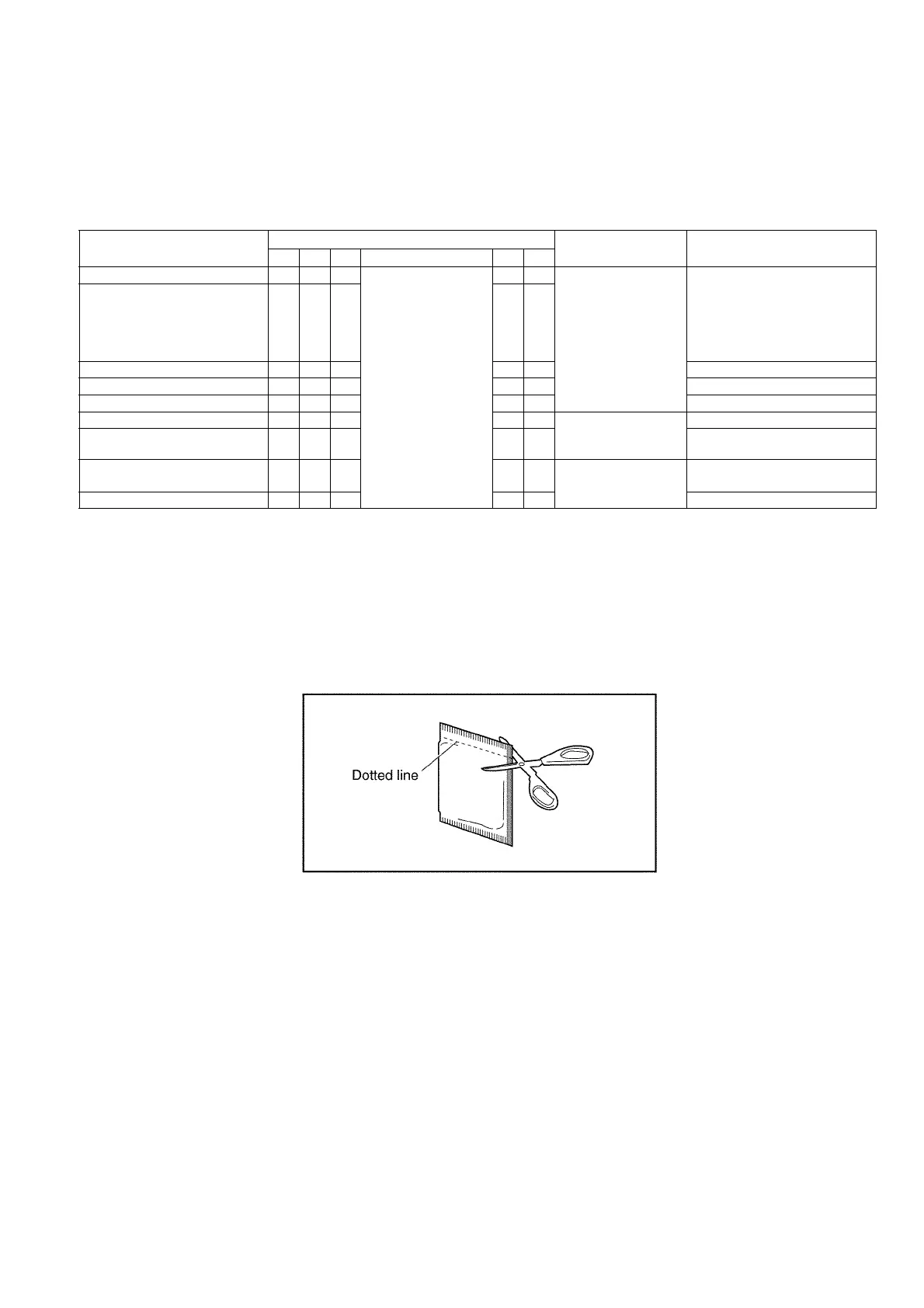Using a pair of scissors, open the bag along the dotted line , and take out the Roller Cleaning Paper.