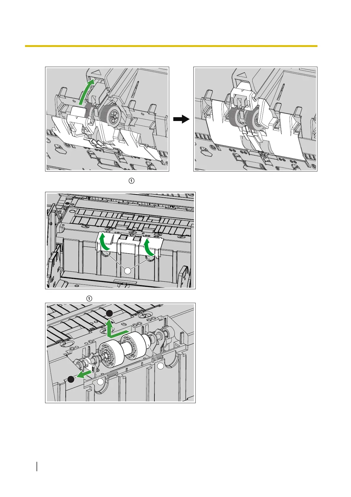 14. Put your fingers on the indents ( ) of the double feed prevention roller cover and pull it upwards to
