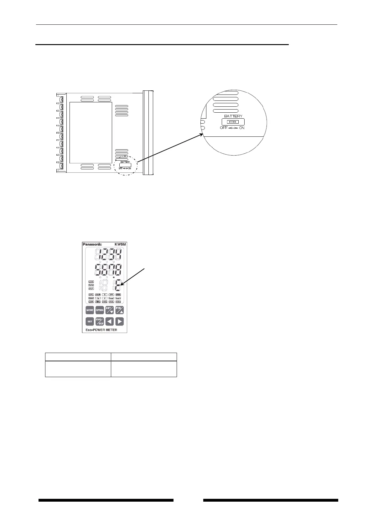 When battery has abnormal or battery power is reduced, “E” is blinking in the bottom line.